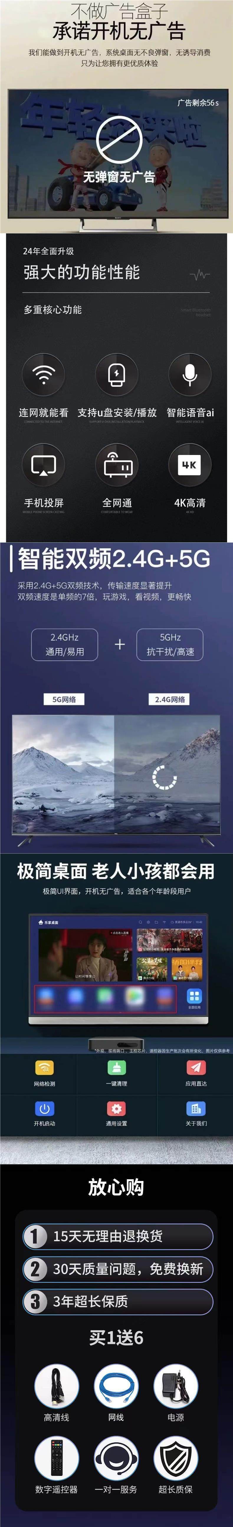 | Color | Network cable model [2k standard definition]-official standard,Network cable model [4k hd + vip] - official standard configuration,Network cable voice model [4k hd + voice remote control + vip] - official standard configuration,Wireless model [4k hd + wifi + vip] - official standard configuration,Wireless voice model [4k hd + wifi + voice remote control + vip] - official standard configuration,Supreme model [32g memory + 5gwifi + voice + permanent vip] |