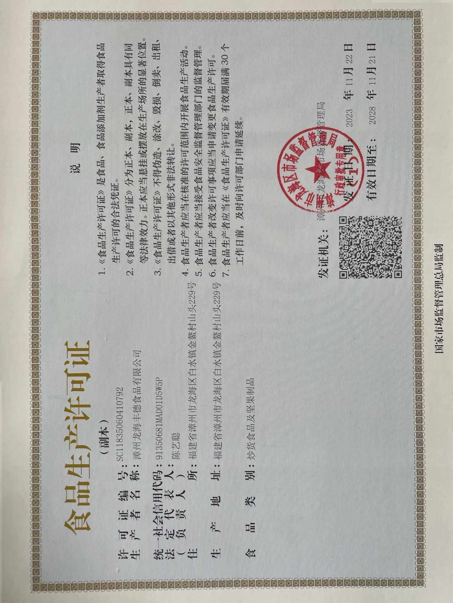 | Production license number | SC11835068103485 |