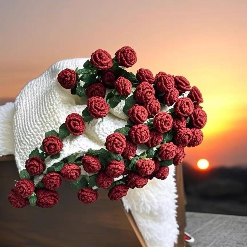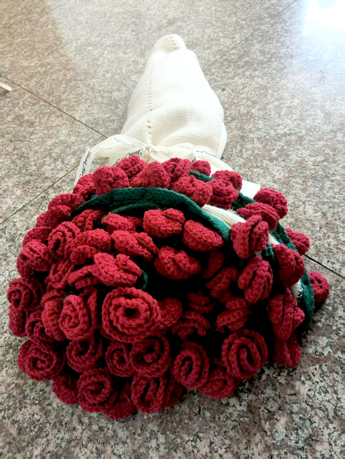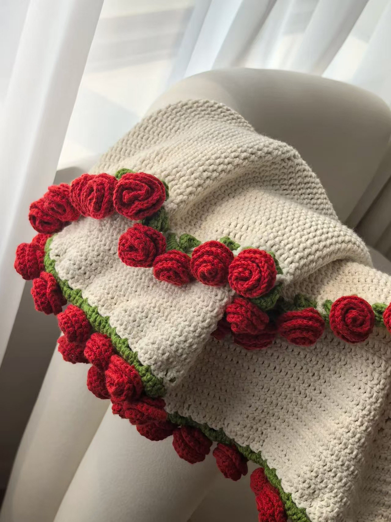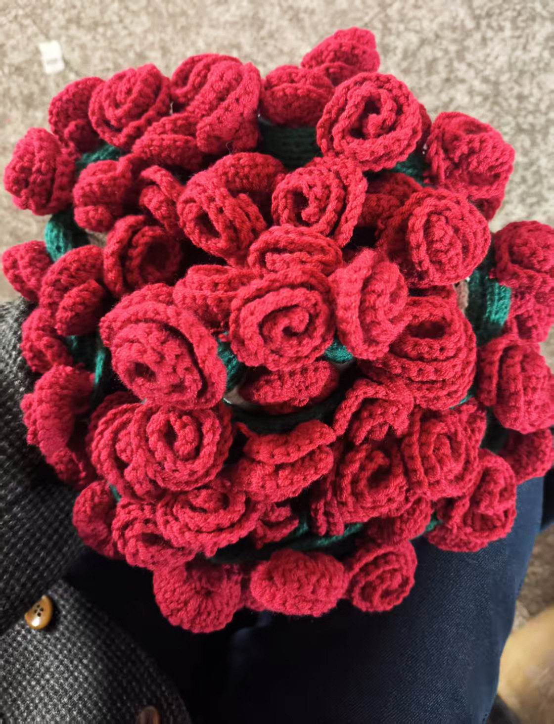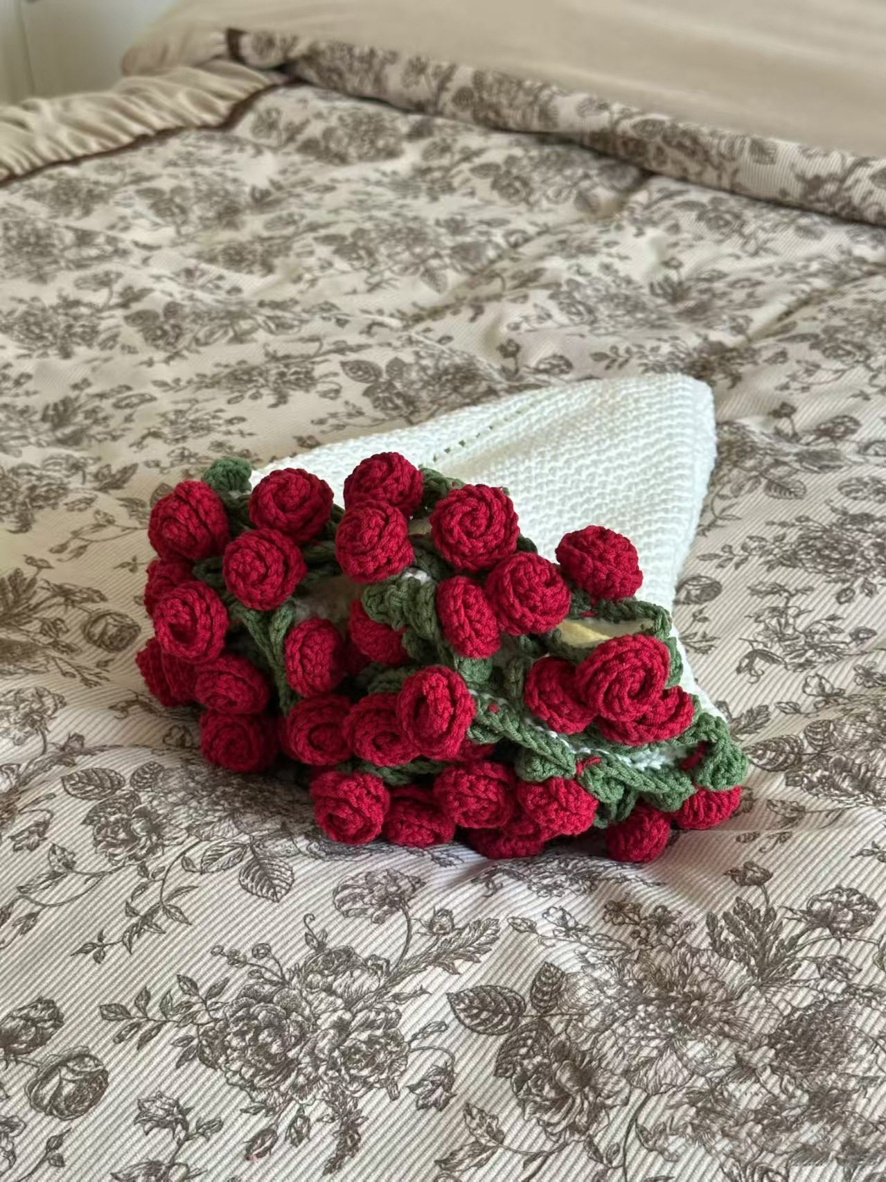 Finished goods delivery rose bouquet blanket hand woven diy crocheted flower blanket for girlfriend gift acrylic material