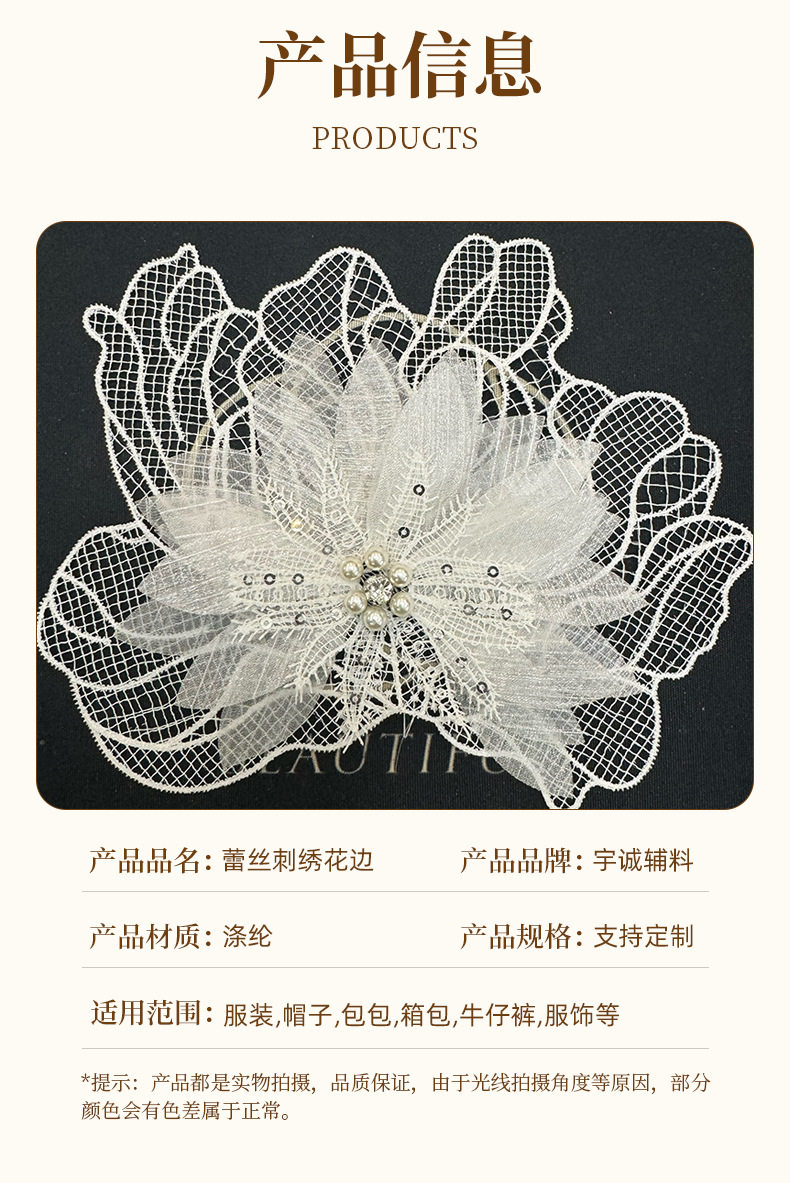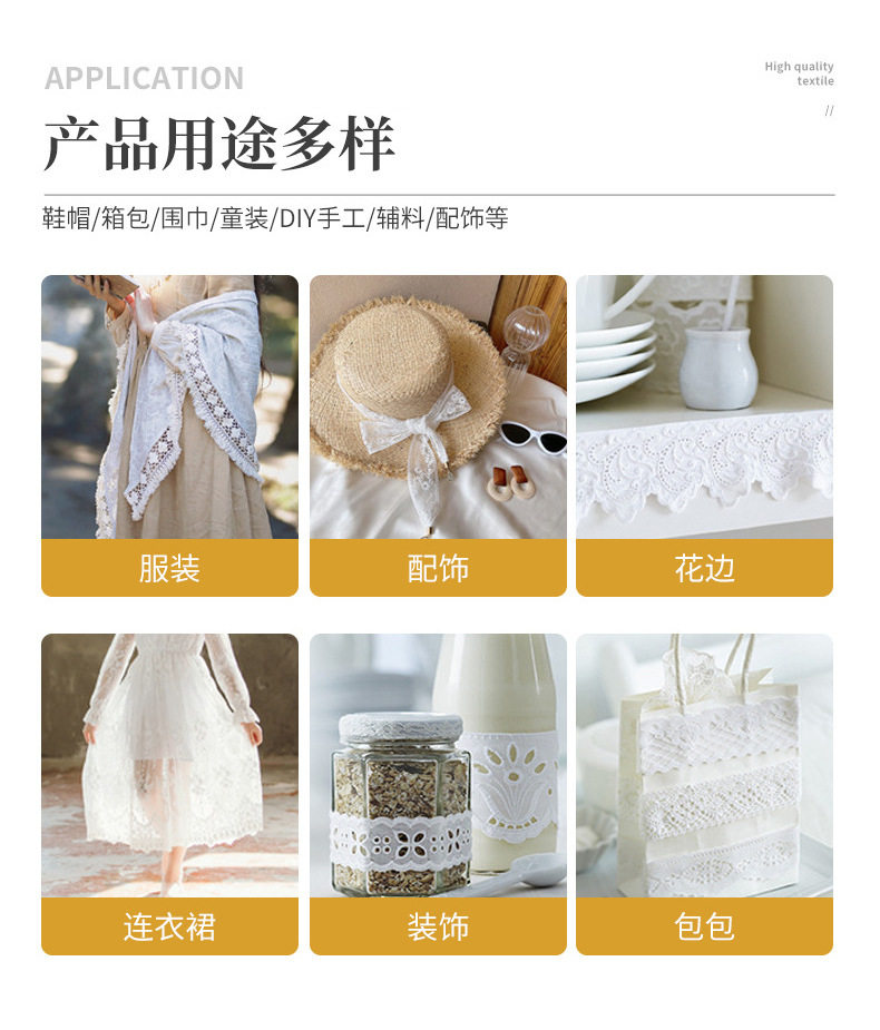 | Scope of application | Pajamas,Underwear,Women's clothing,Headwear,Dress,Home,Bedding,Curtain,Wedding dress,Clothing,Bra,Home textiles,Diy handmade,Clothing,Skirt,Lace underwear,Window decorations |