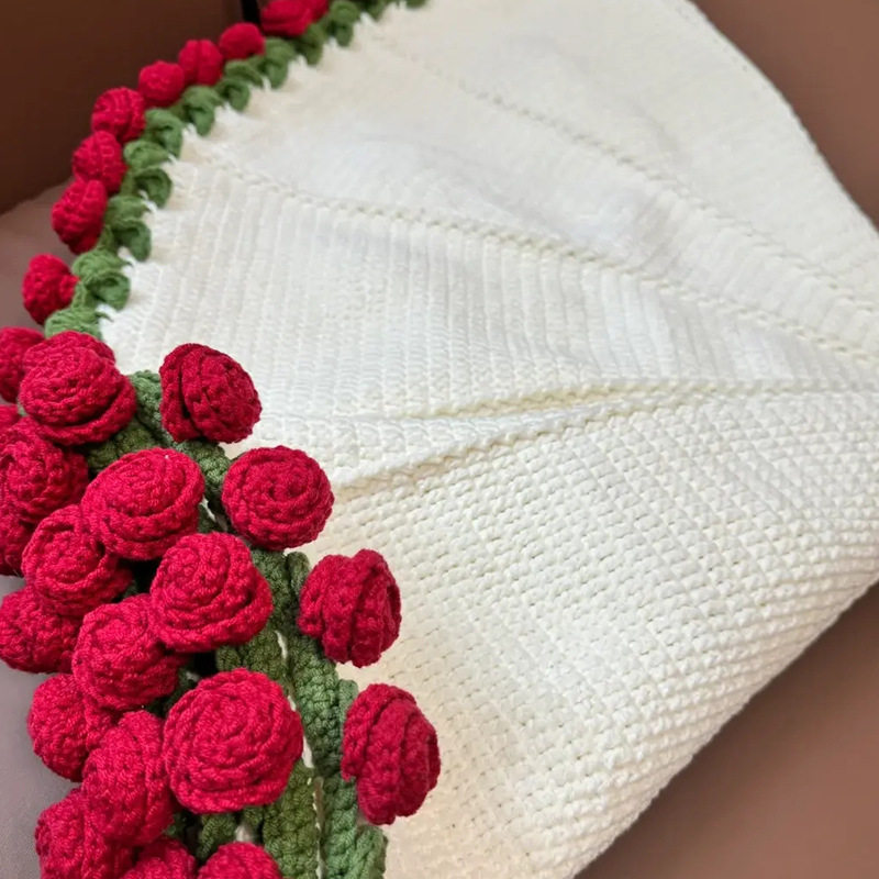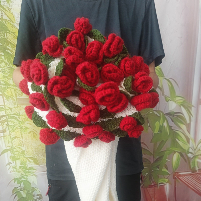 Finished Handmade Woolen Bouquet Blanket, Crocheted Lily of the Valley Rose Blanket, Creative Bouquet, Essential Gift for Goddess