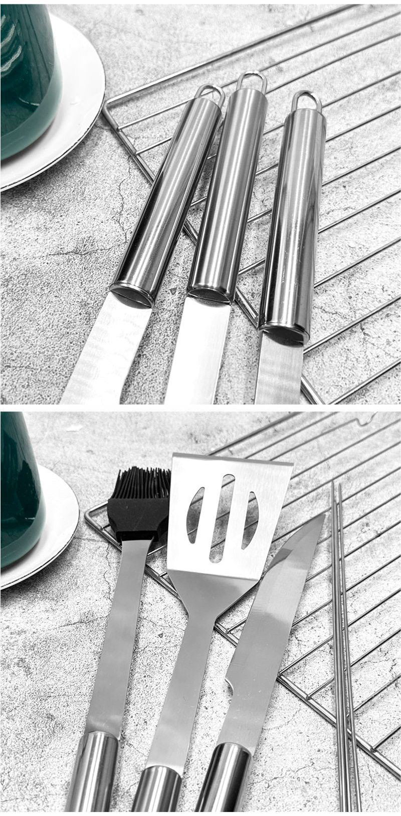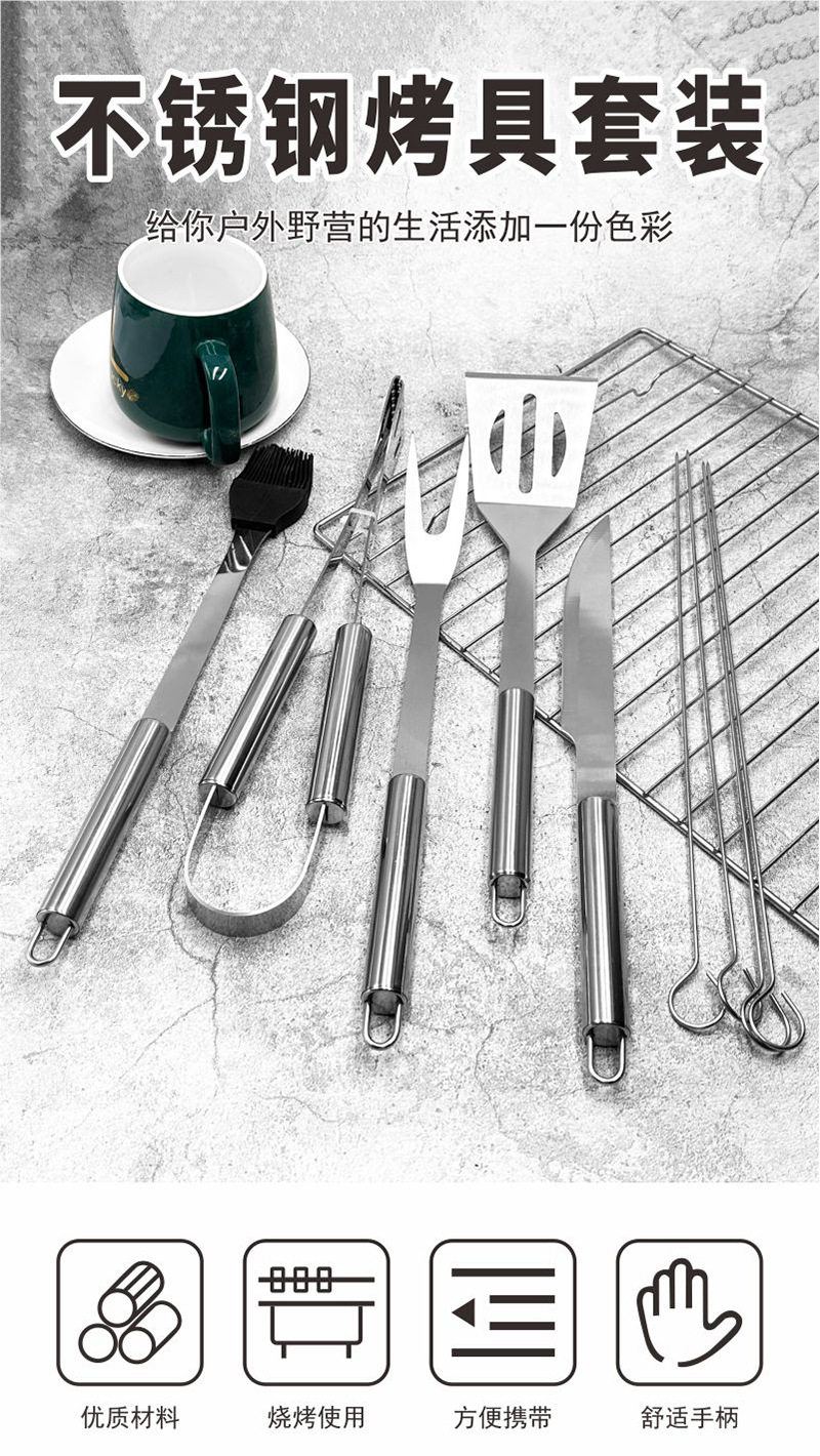 Stainless Steel Handle Grill Set Barbecue Tool Set Bbq Set Outdoor Camping Style Tableware Stainless Steel Set