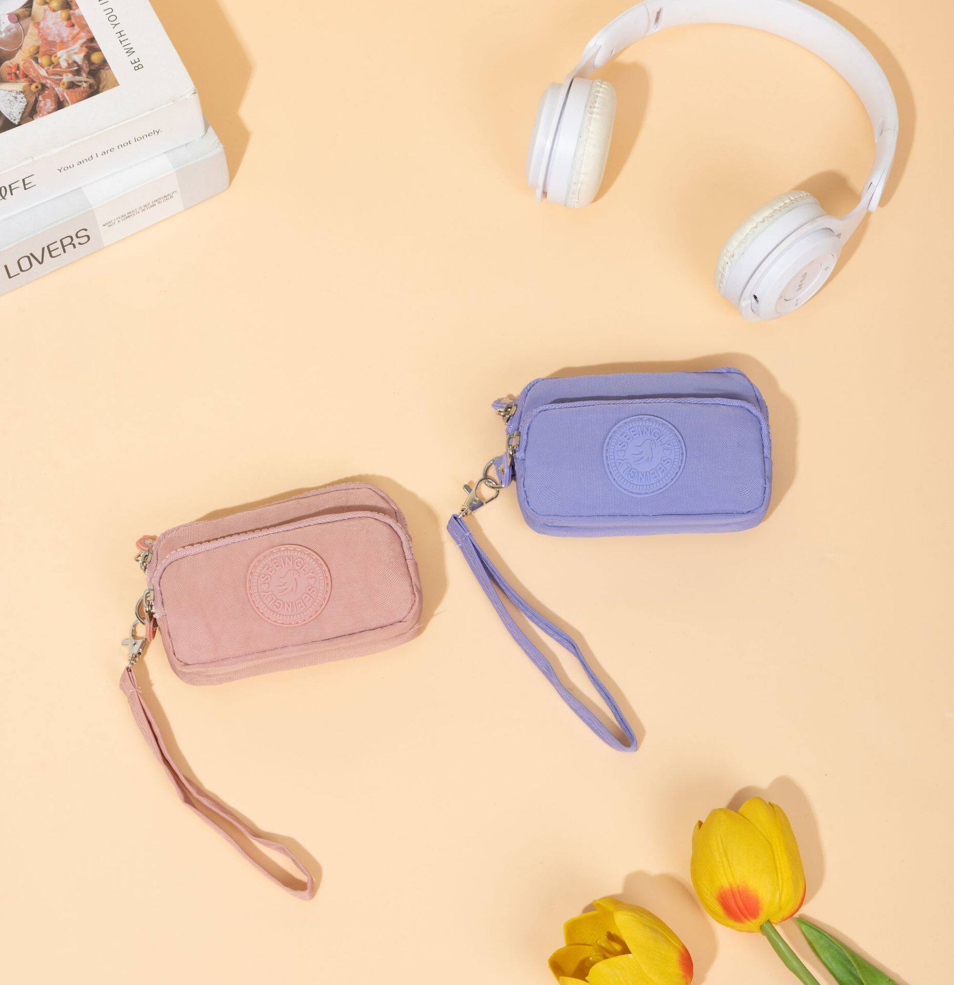 Factory direct foreign trade coin purse new solid color gift three pull anti-water nylon foreign trade coin purse wholesale