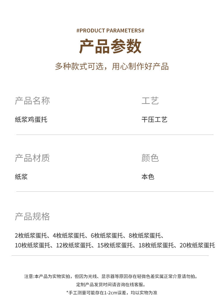 | Specifications and models | 2 egg trays (1000 pieces/pack); 2 pieces |