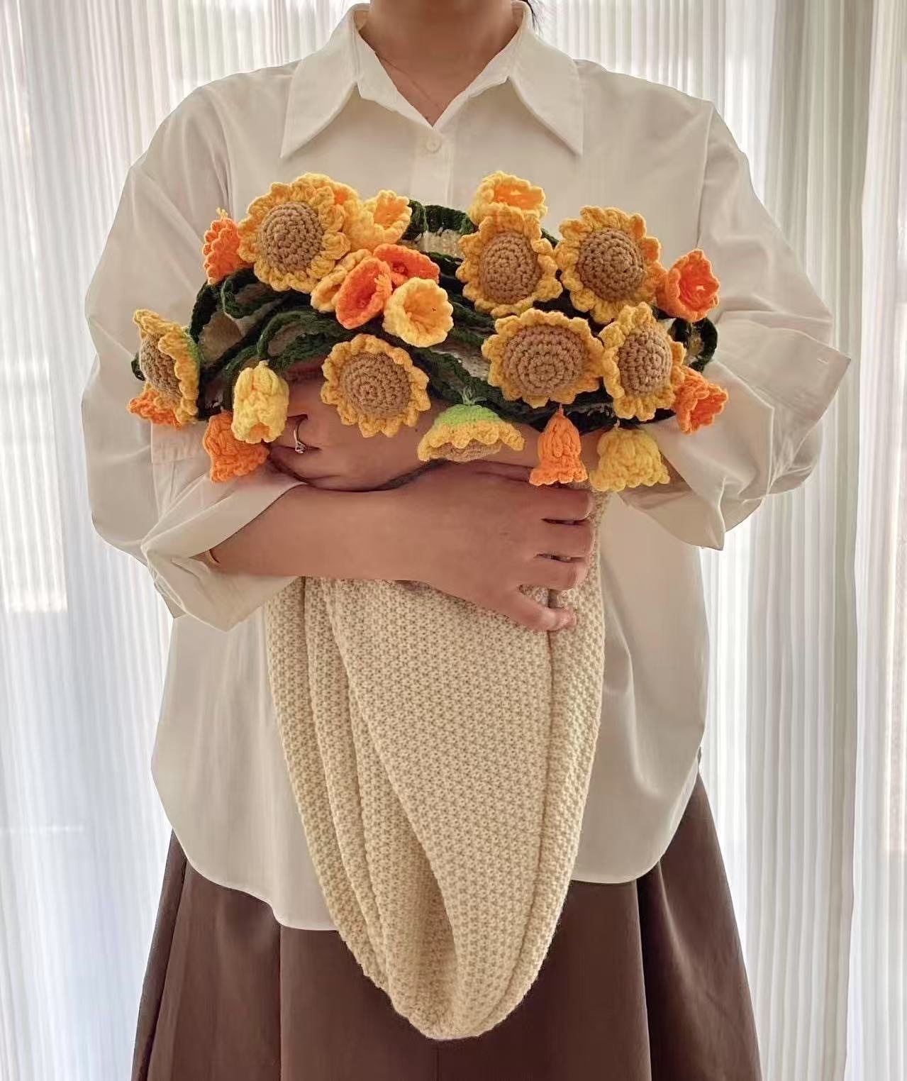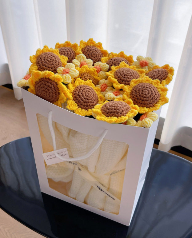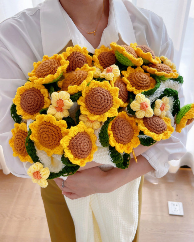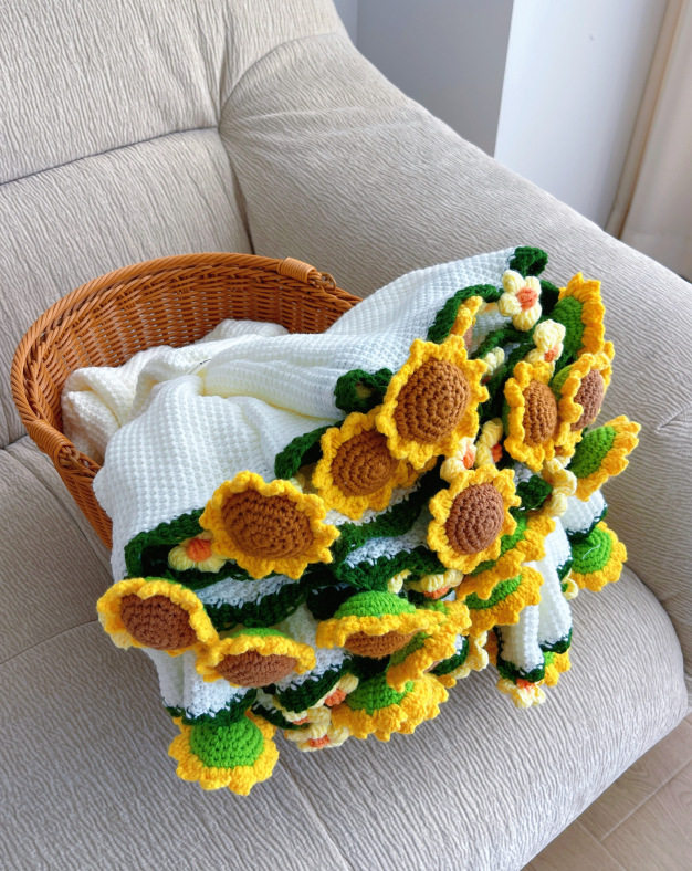 Finished Sunflower Bouquet Blanket Pastoral Blanket Handmade Woven Blossom Flower Blanket Rose Bouquet Blanket Wholesale Blanket