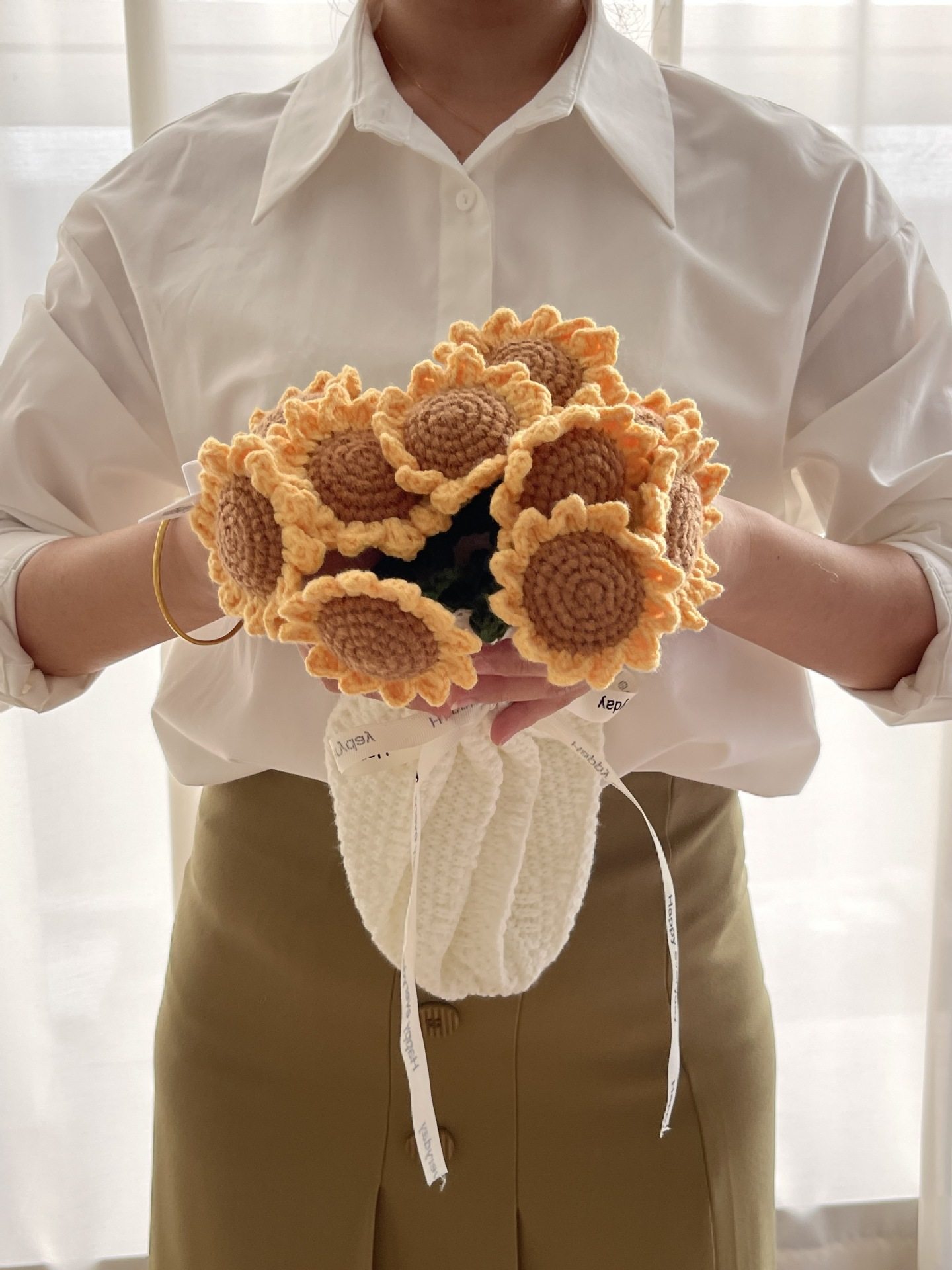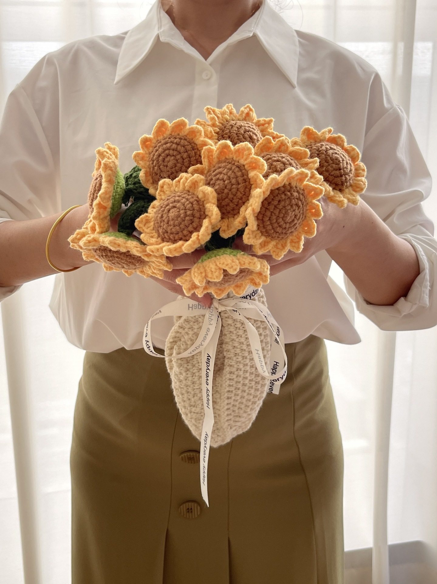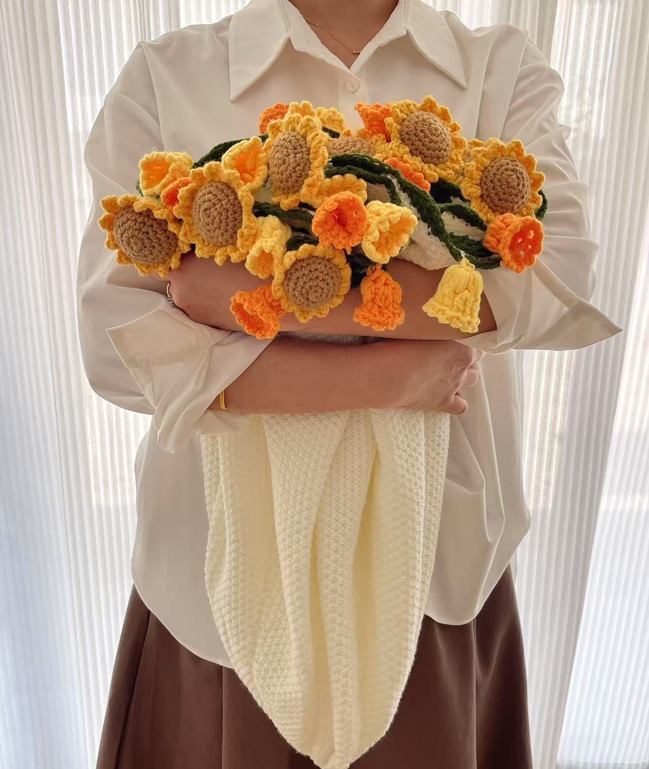 Finished Sunflower Bouquet Blanket Pastoral Blanket Handmade Woven Blossom Flower Blanket Rose Bouquet Blanket Wholesale Blanket