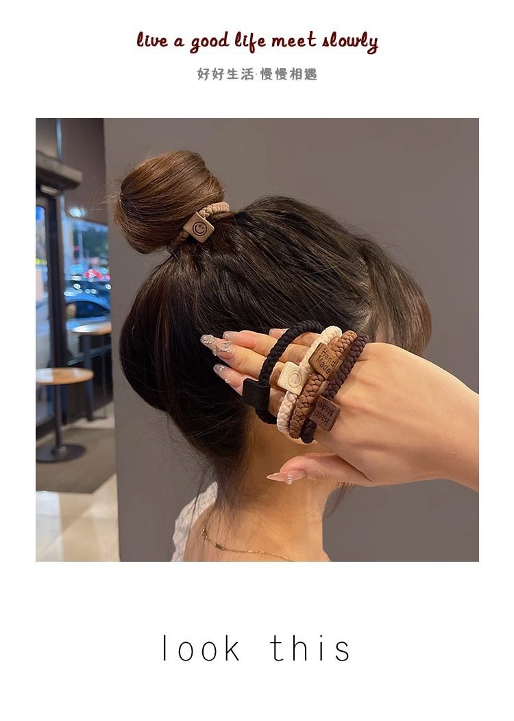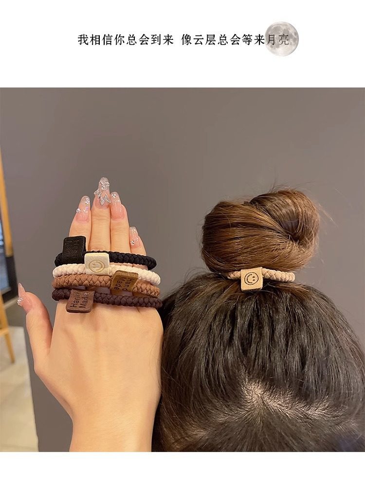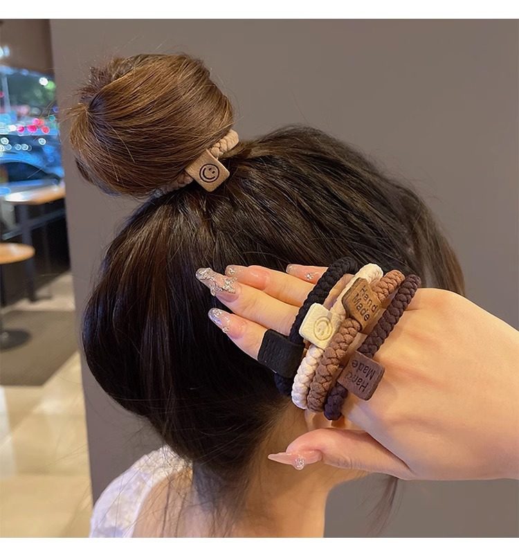 Simple and Durable High Elastic Rubber Tendon Women's Tie Net Red Head Rope Smiley Face Leather Case New Maruzi Paytail Hair Ring Hair Rope