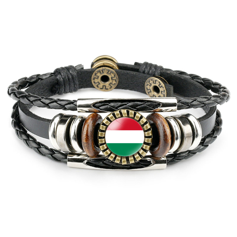 Cross-Border New Accessories European Country Flag Pattern Time Gemstone Leather Bracelet Retro Accessories