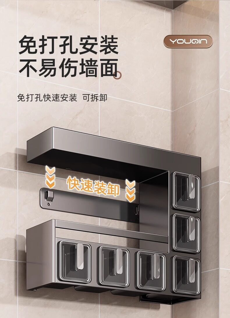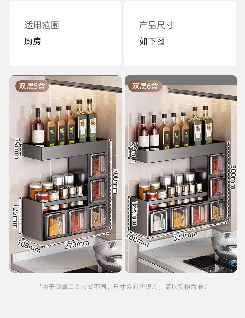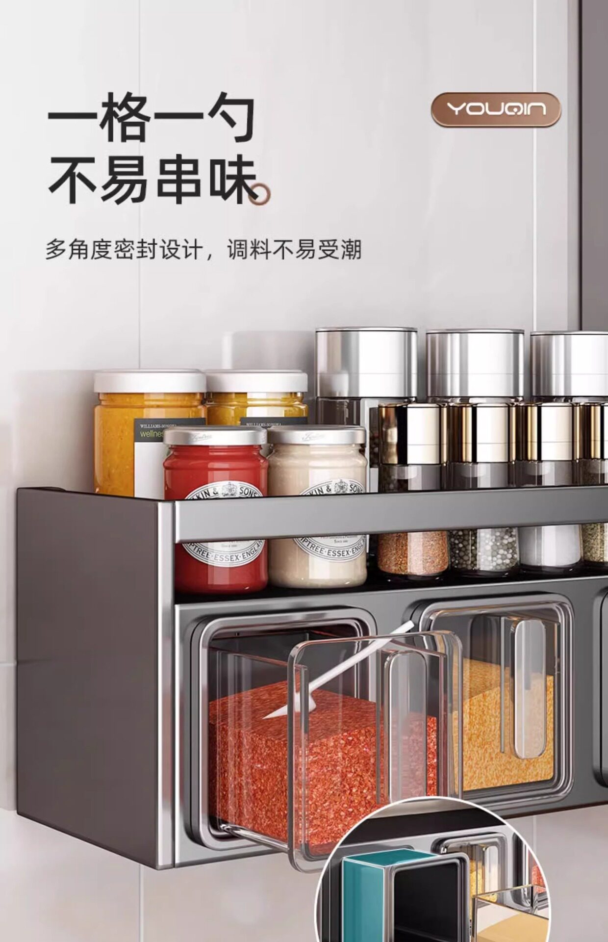 Seasoning Box Wall Hanging Household Kitchen High-end New Seasoning Bottle Storage Rack Seasoning Storage Box Salt Pot