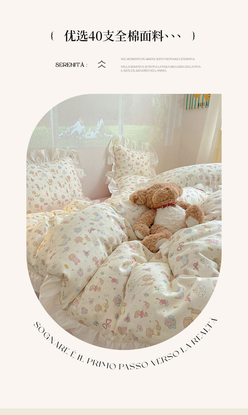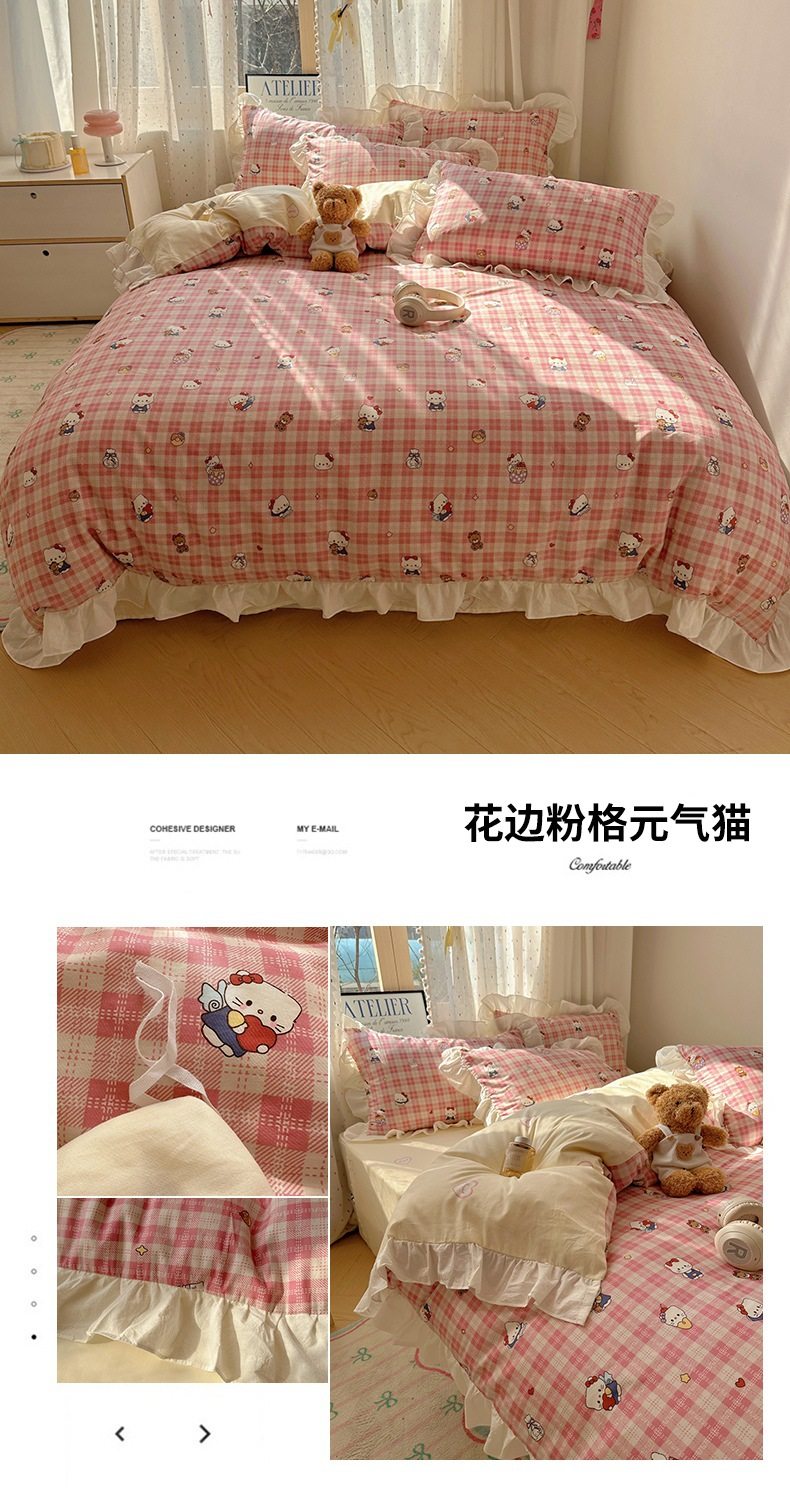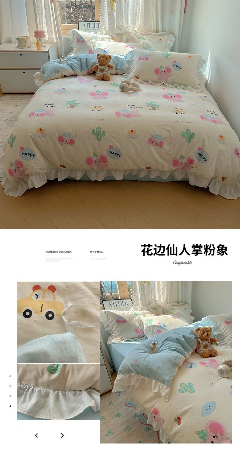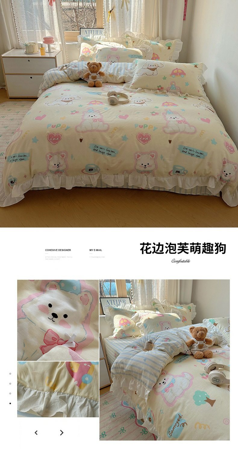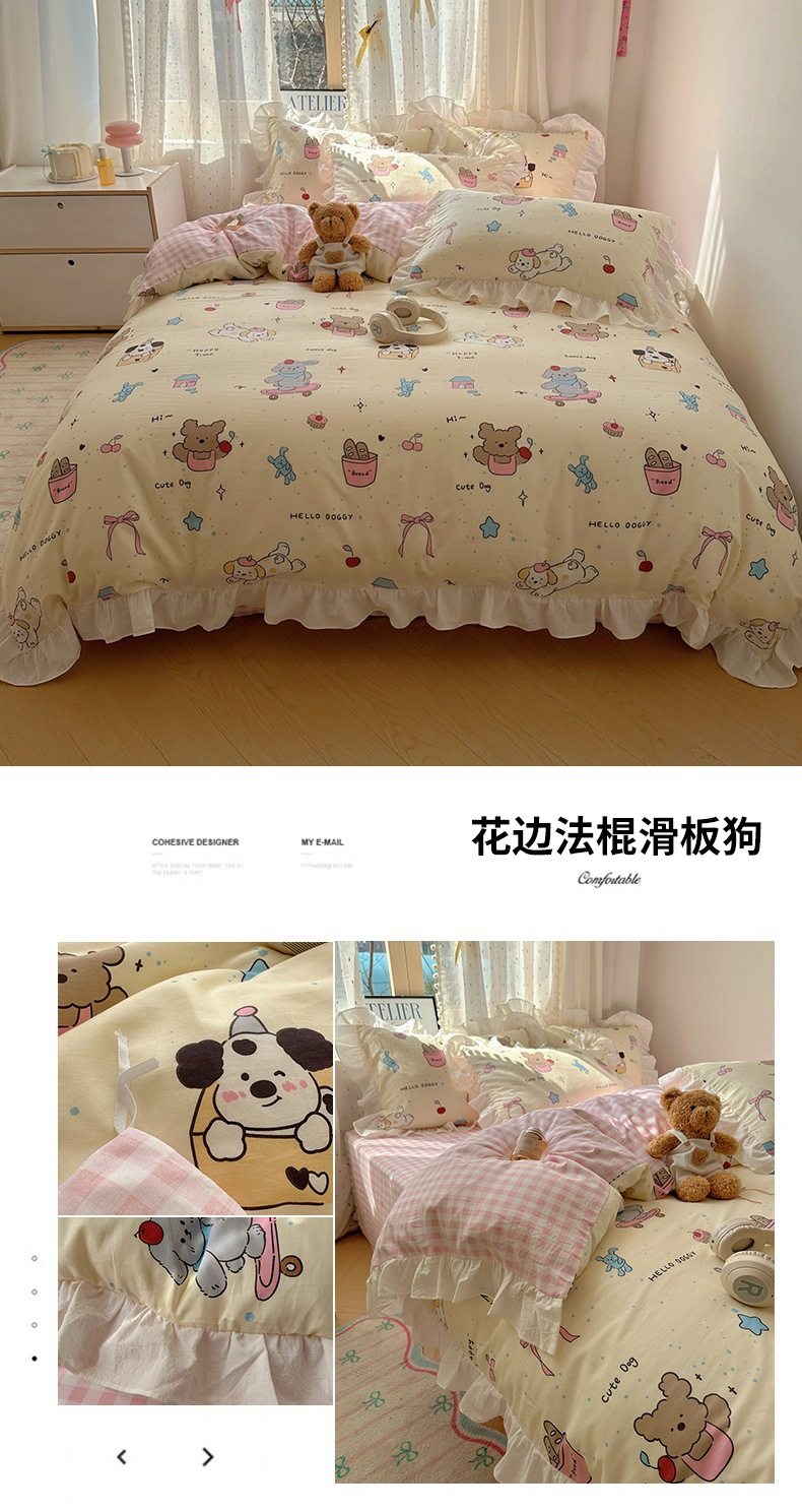 Ins Lovable Style Lace Cotton Four-piece Bedding 100 Cotton Cartoon Quilt Cover Bed Sheet Three-piece Set for Dormitory