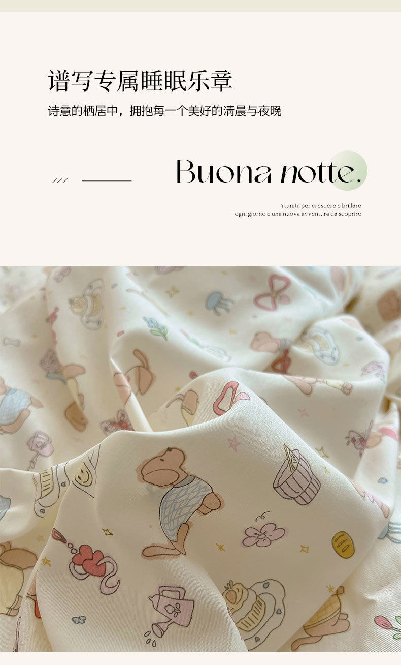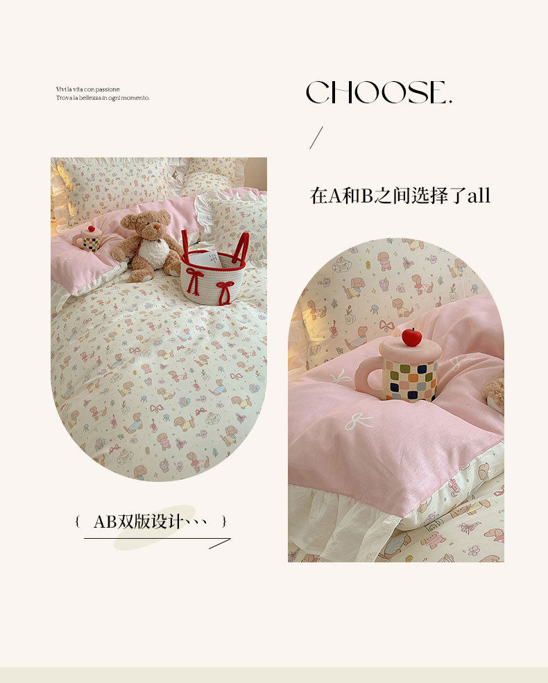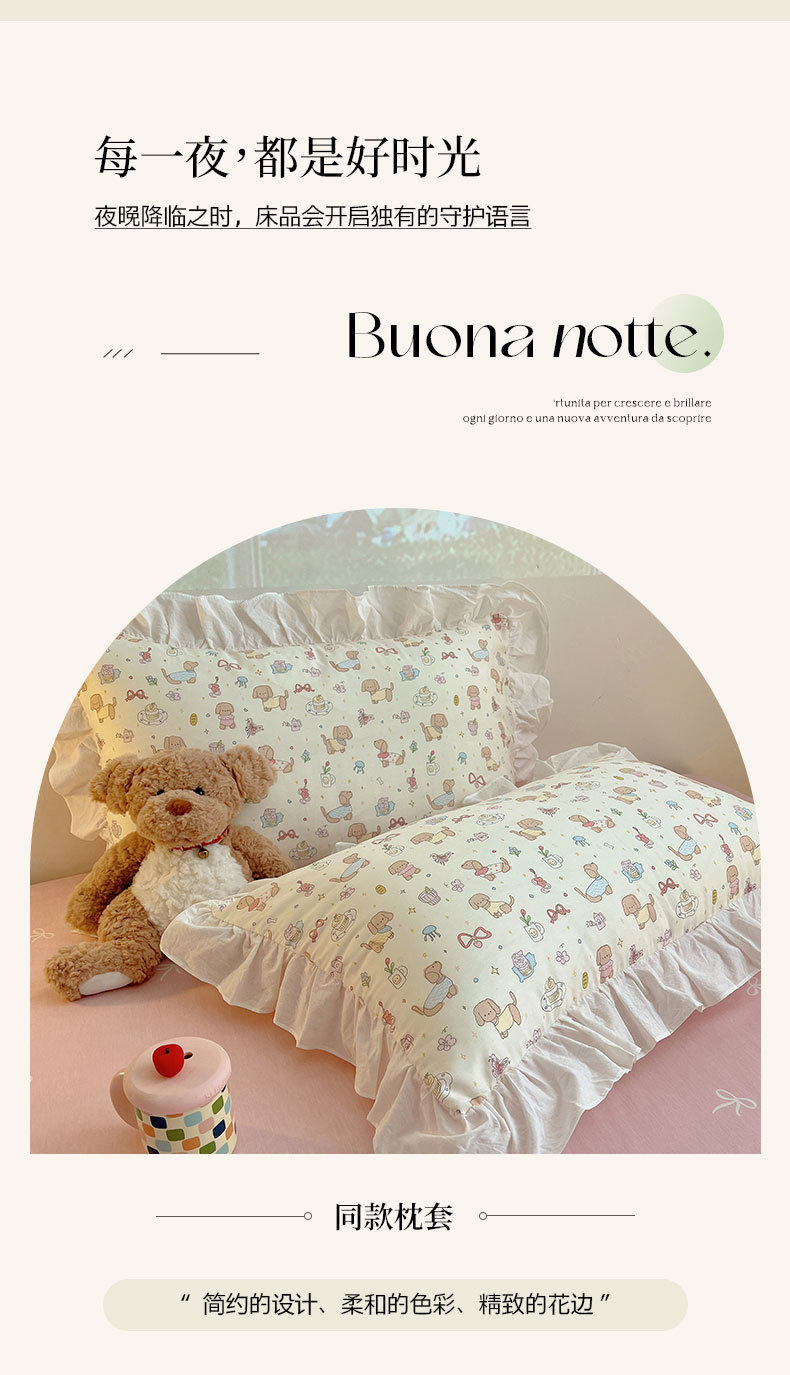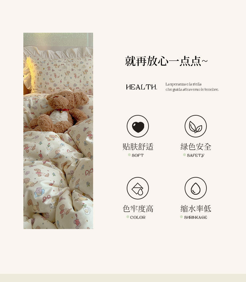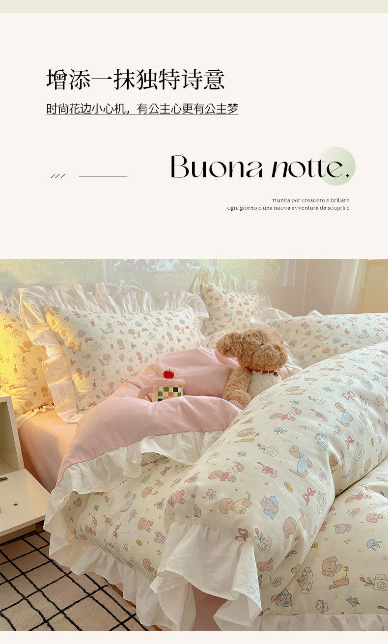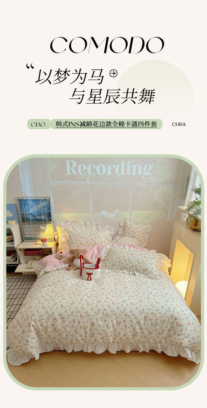 Ins Lovable Style Lace Cotton Four-piece Bedding 100 Cotton Cartoon Quilt Cover Bed Sheet Three-piece Set for Dormitory