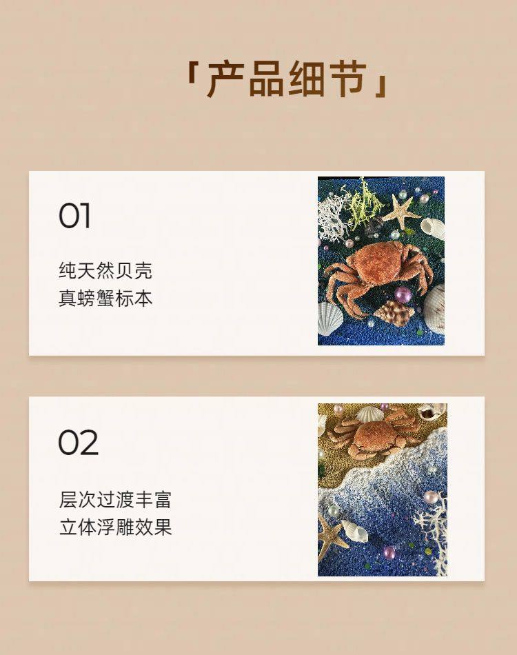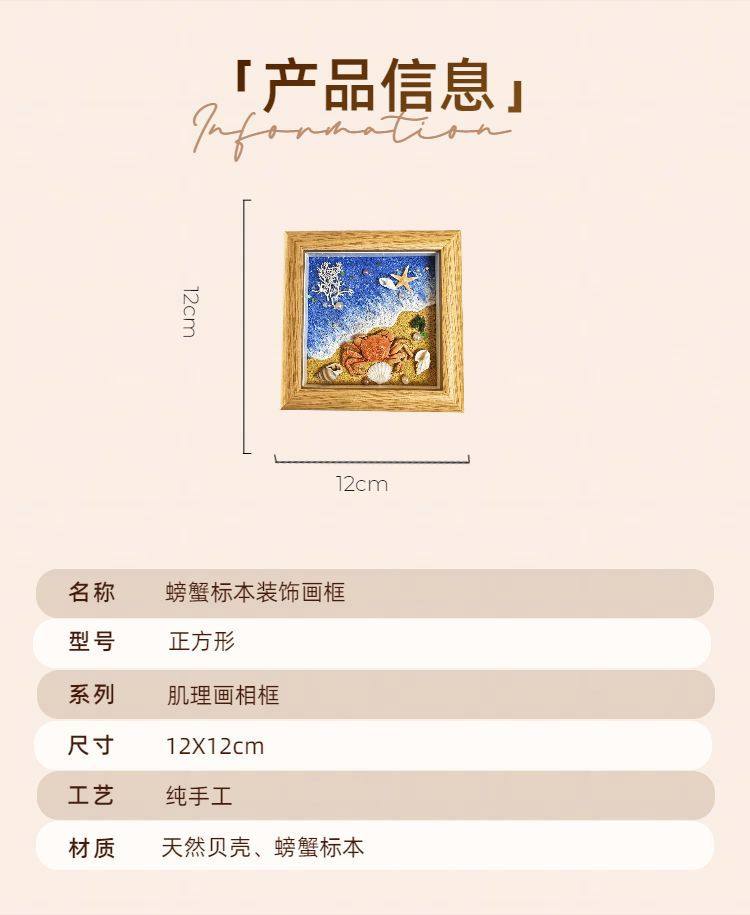 Crab Specimen Texture Painting Photo Frame Stereo Creative Photo Frame Ornaments Beach Shell Seascape Decorative Painting Cultural and Creative Gifts