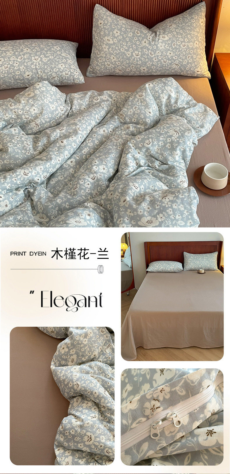 Class A maternal and infant grade antibacterial aerobic cotton double-layer yarn skin-friendly cotton small fresh printed sheets three or four-piece set