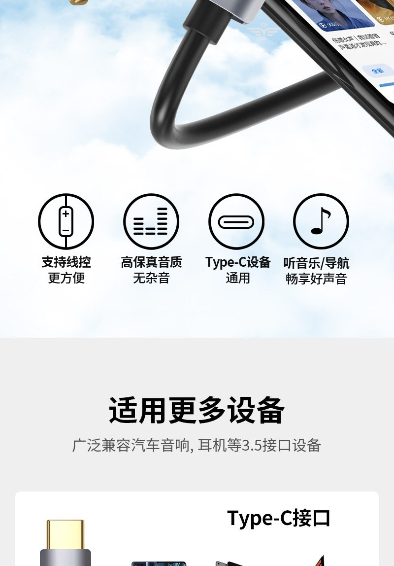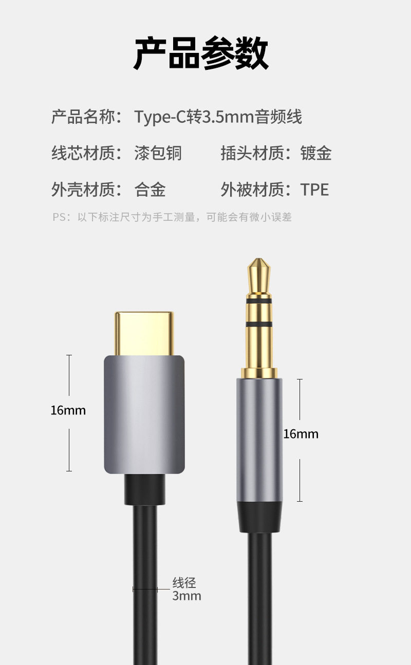 Song rhyme typec audio cable to 3.5mm audio cable for mobile phone notebook audio headset audio cable