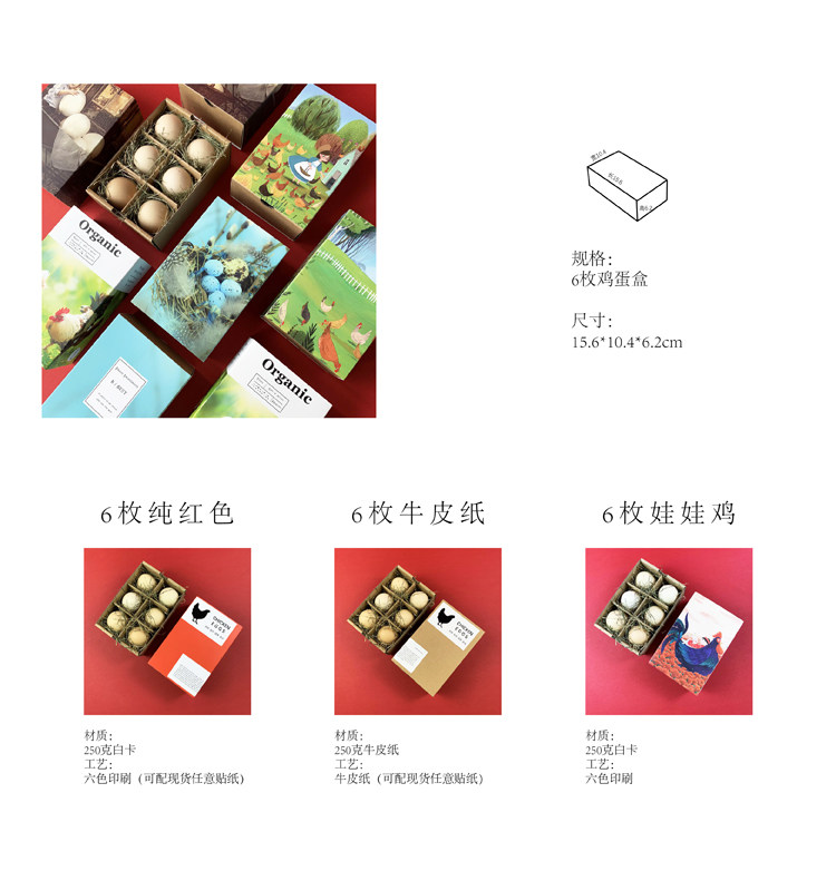 | Specifications and models | 2 kraft paper egg cartons, stickers optional, not optional random delivery,2 doll chicken egg cartons,4 pieces of kraft paper egg cartons, stickers optional, random delivery not selected,6 pieces of kraft paper egg cartons, stickers optional, random delivery not selected,6 pure red egg cartons, stickers optional, random delivery not selected,6 pieces doll chicken egg carton,6-piece family farm egg carton,6 sunshine hen egg cartons,6 blue chicken coop egg cartons,6 chinese style red egg boxes,6 chinese style golden egg boxes,6 chinese style black egg cartons,6 cute girl egg cartons,10 pieces of kraft paper egg cartons, stickers optional, not optional random delivery,10 pure red egg cartons, stickers optional, random delivery not selected,10 chinese style red egg cartons,10 pieces doll chicken egg carton,10 chinese style golden egg boxes,10 chinese style black egg cartons,10 blue chicken coop egg cartons,10-piece sunshine hen egg carton,10 easter eggs egg carton,10 rose red cartoon chicken egg cartons,10 simple chicken egg cartons,10 pieces of clucking chicken egg carton,10 ink chicken egg cartons,10pcs grass chicken egg carton,10-piece home farm egg carton,30 pieces doll chicken egg carton,30 piece sunshine hen egg carton,30 blue chicken coop egg cartons,30 pieces rose red cartoon chicken egg carton,30 simple chicken egg cartons,Doll chicken tote bag,Sunshine hen tote bag,Blue chicken coop tote bag,Rose red cartoon chicken tote bag,Simple chicken tote bag |