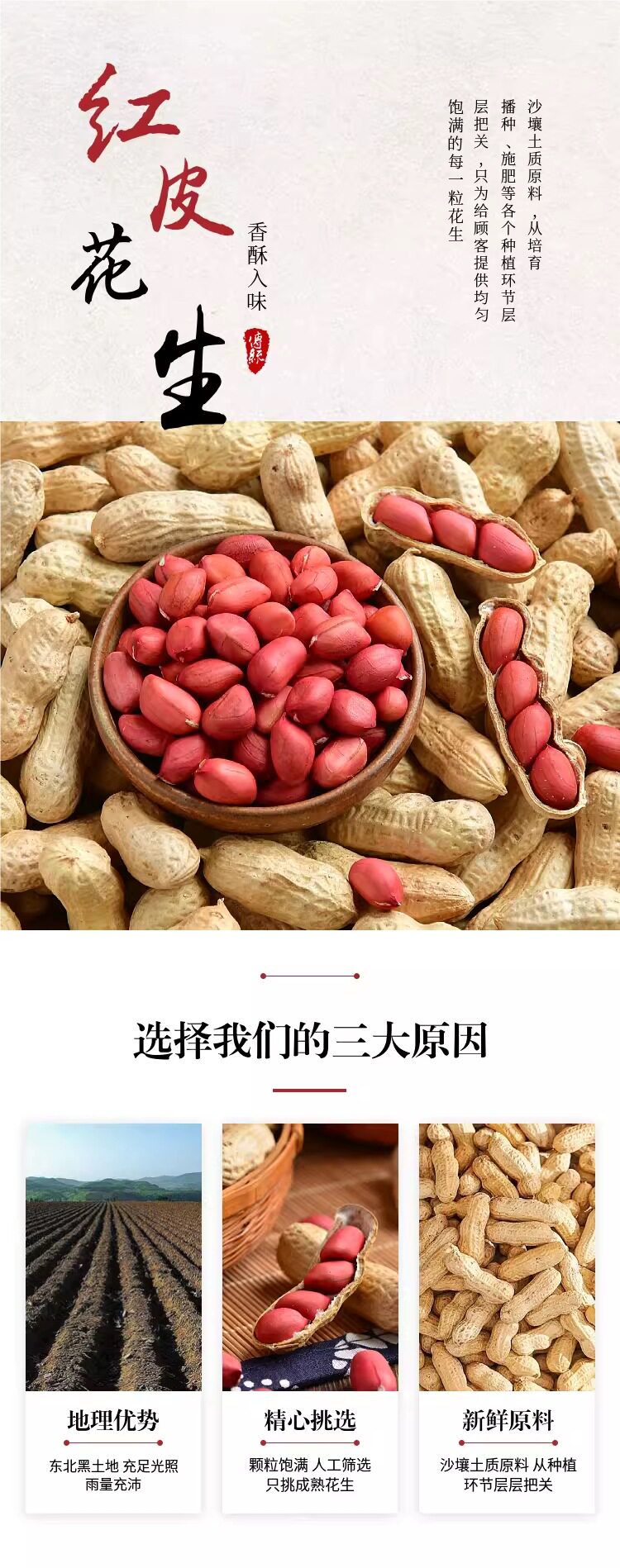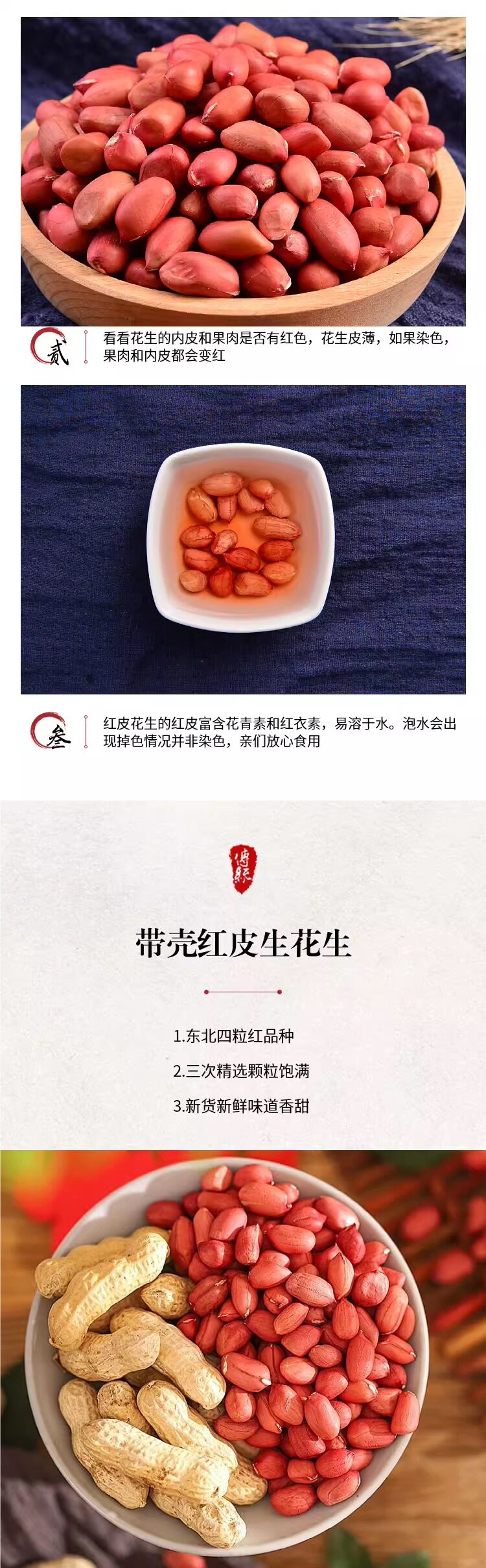 | Packaging specifications | 【raw】raw peanuts with shells 250g,【raw】raw peanuts in shells 0.5kg,【raw】raw peanuts in shells 1.0kg,【raw】raw peanuts in shells 1.5kg,【raw】raw peanuts in shells 2.5kg,【raw】red-skinned peanuts without shells 1.5kg,【raw】red-skinned peanuts without shells 2.5kg,【original fried】red-skinned peanuts in shells 1.5kg,【original fried】red-skinned peanuts in shells 2.5kg |