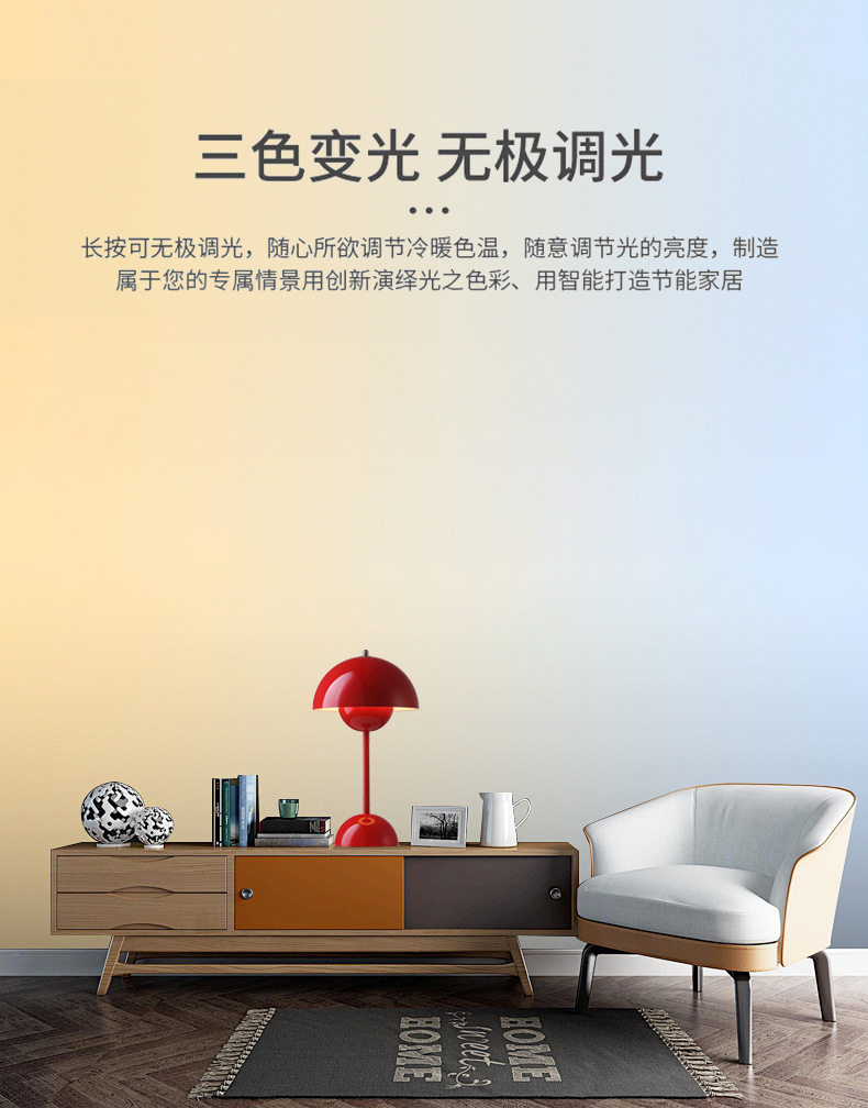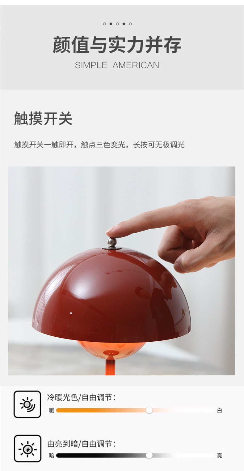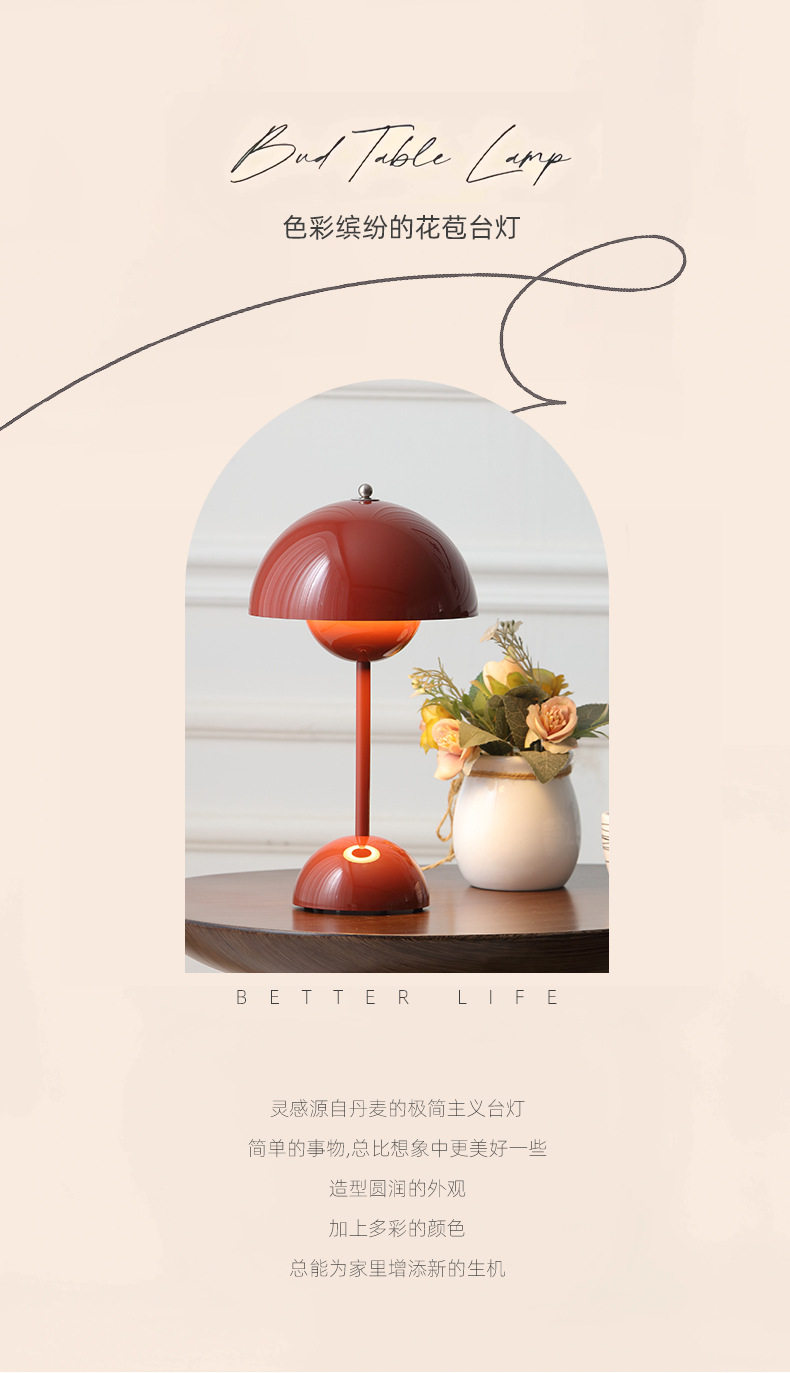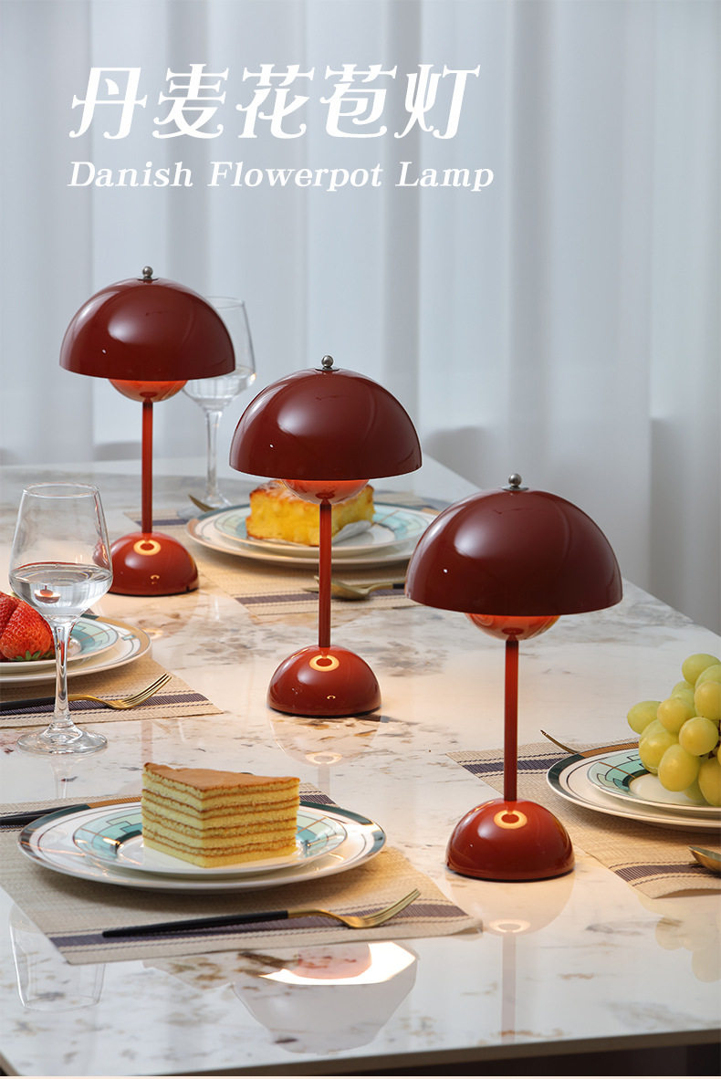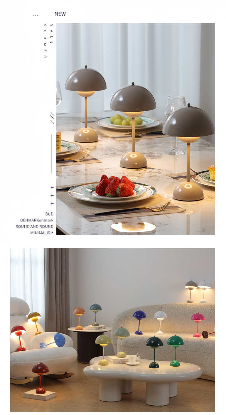 Denmark 1:1 high-quality high-grade flower bud table lamp mushroom table lamp Nordic atmosphere rechargeable wireless bedroom bedside table lamp