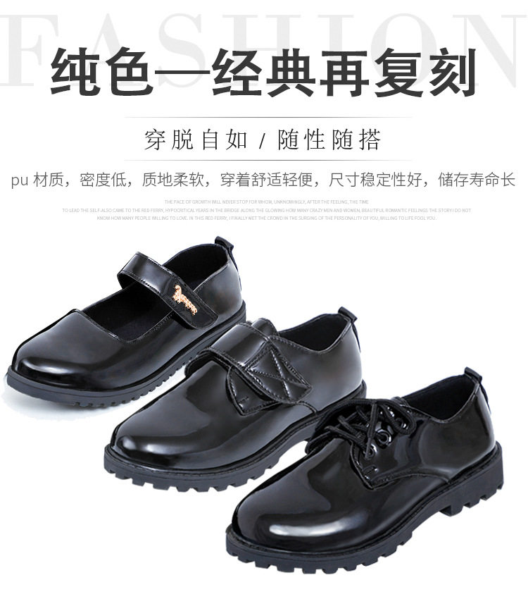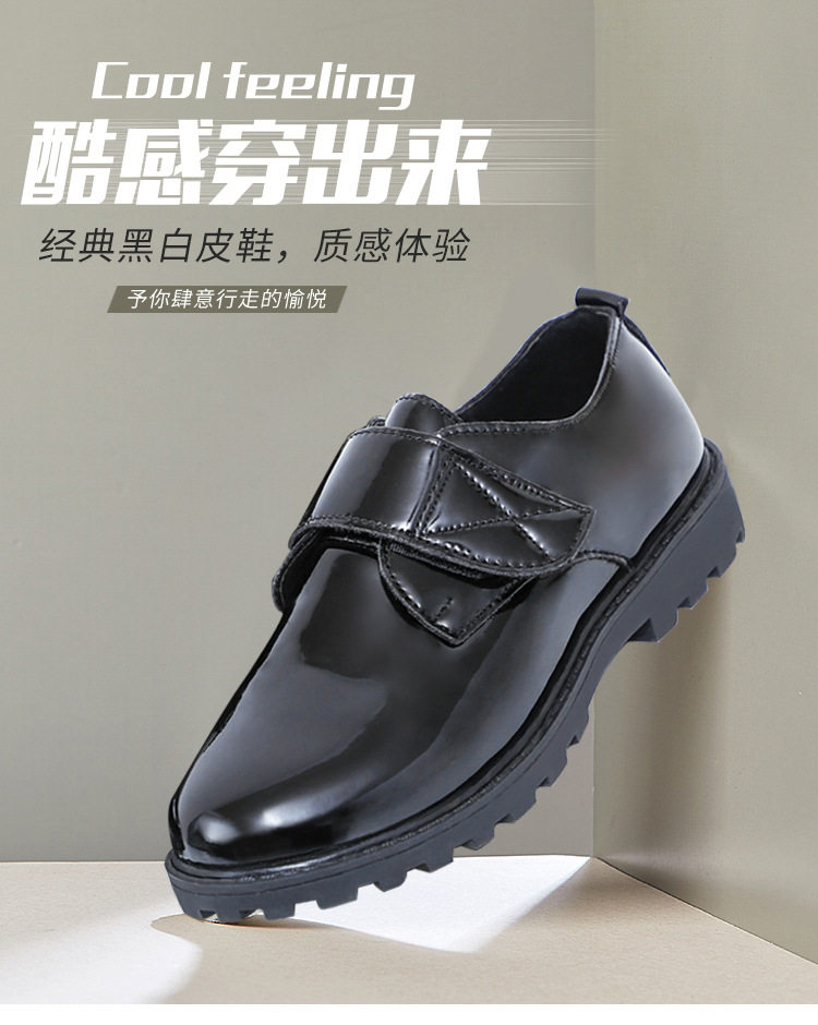 Boys' and Girls' Leather Shoes for Students, Children's Performance Shoes, Soft-Soled Black British Style School Performance Single Shoes for Older Children