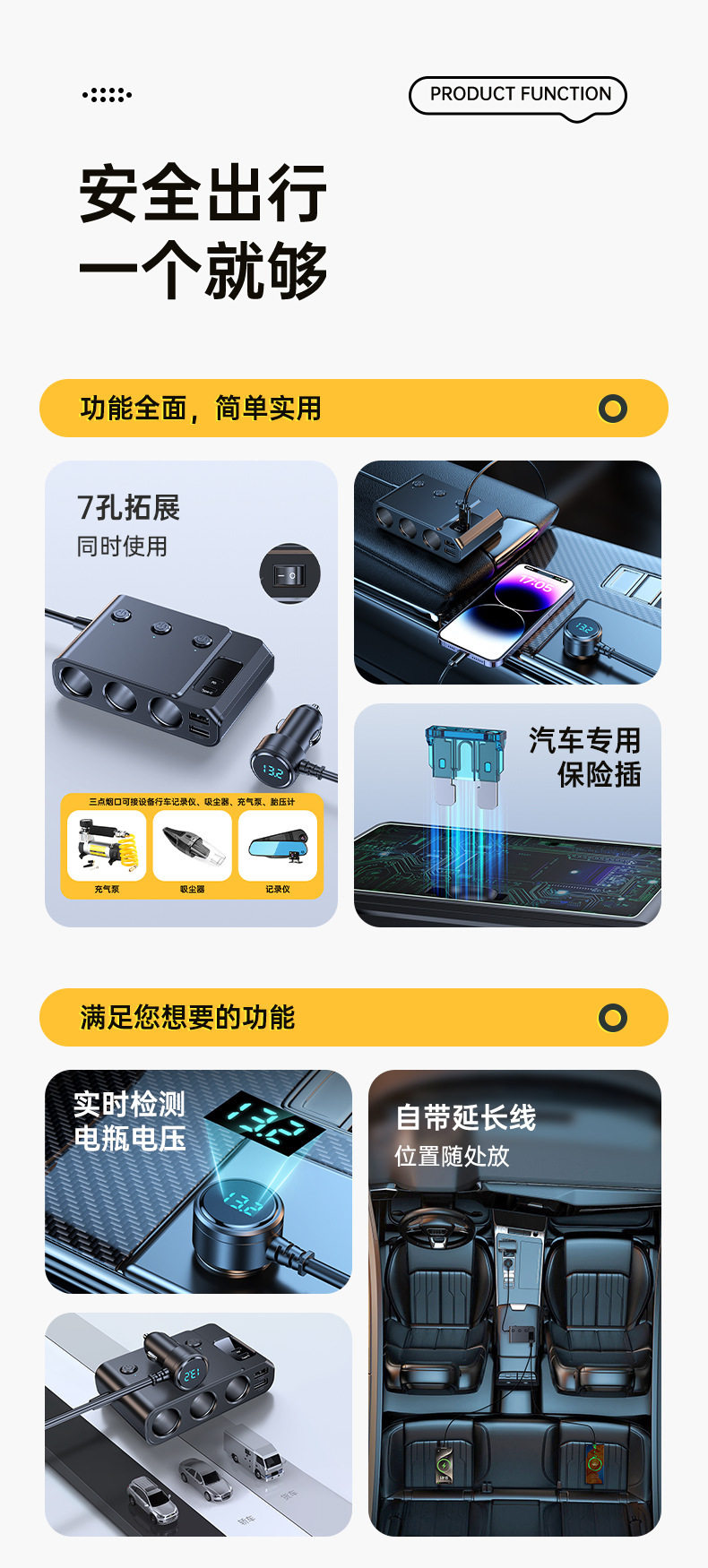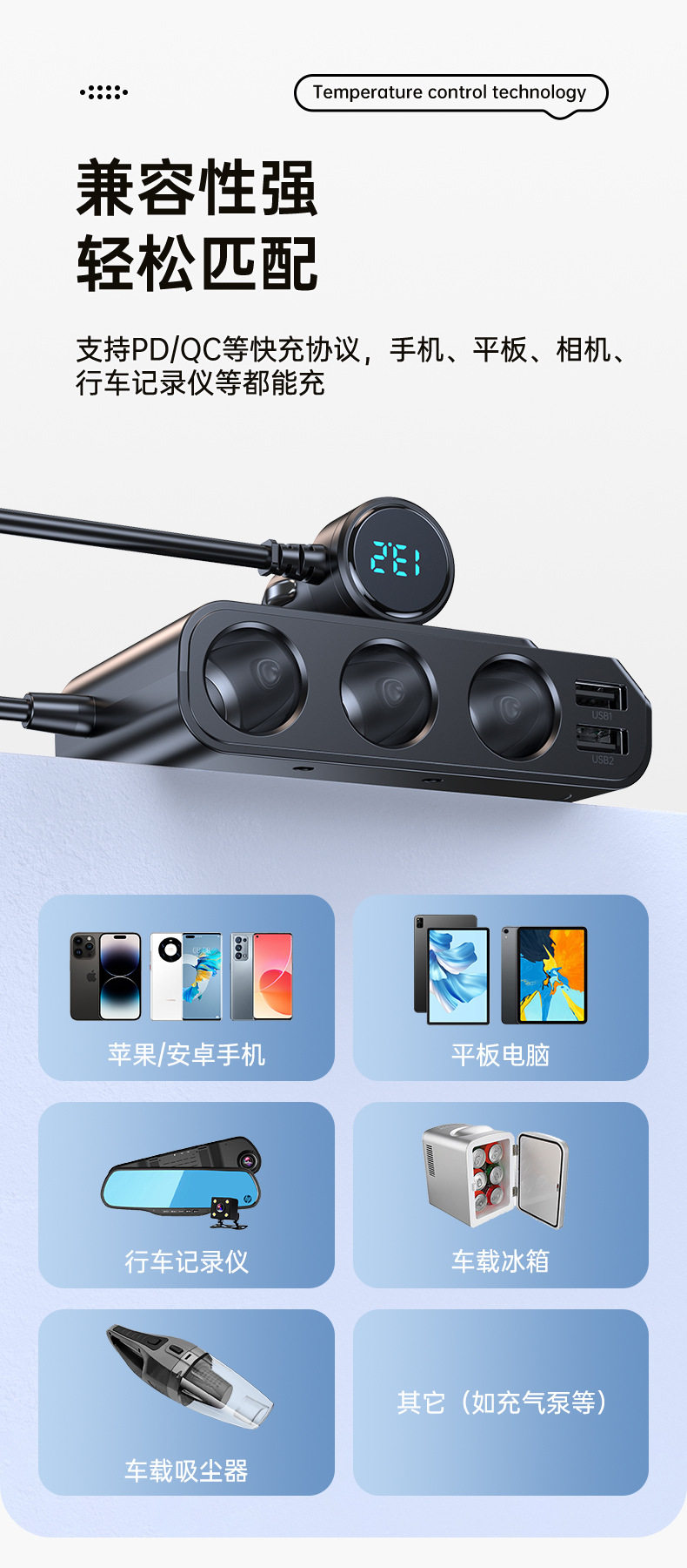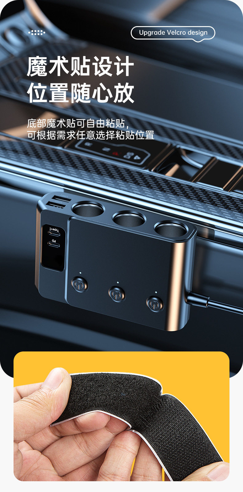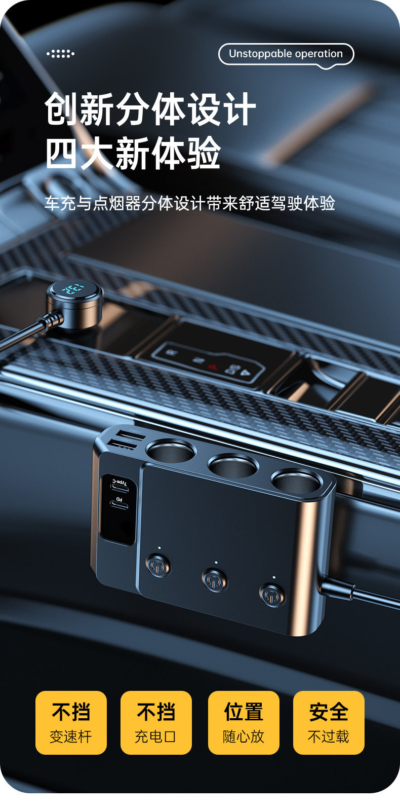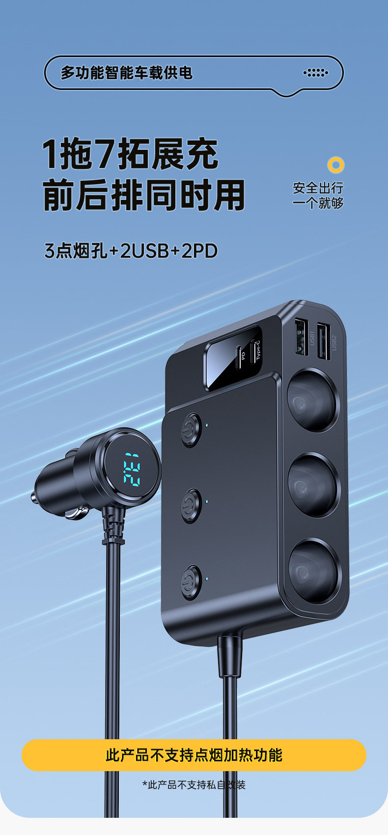 Cross-Border Hot-Selling One-To-Three Car Cigarette Lighter Multi-Function Usb3.0 and Pd Interface Car Multi-Device Charger