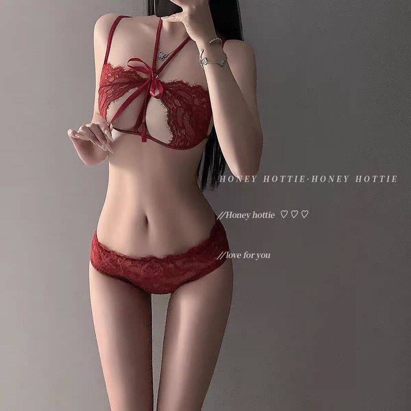 Date Secret~Lace-Up Sexy Intimates for Small Breasts/Large Breasts Without Rims Sexy Lace Temptation Bra and Panty Set