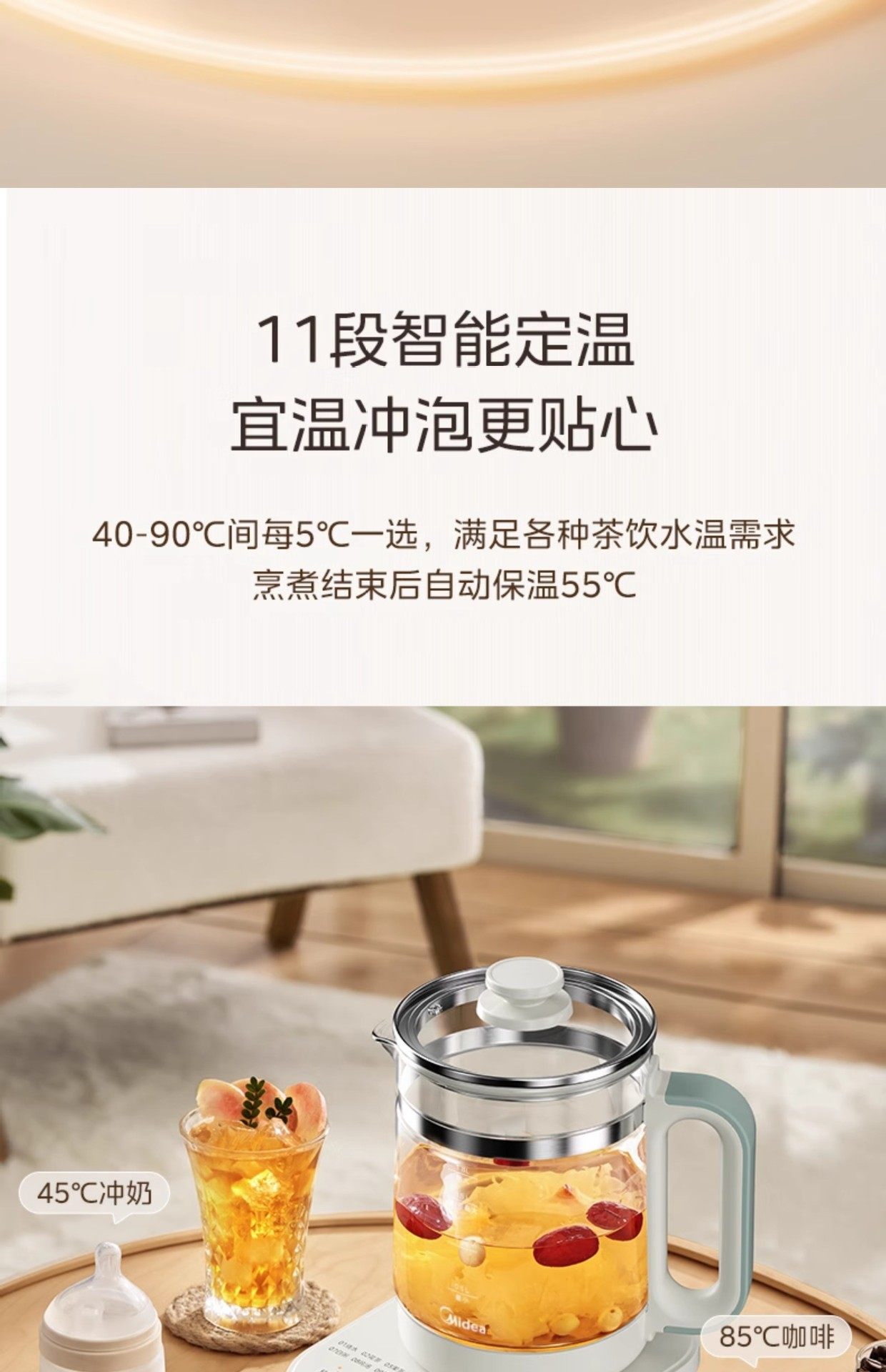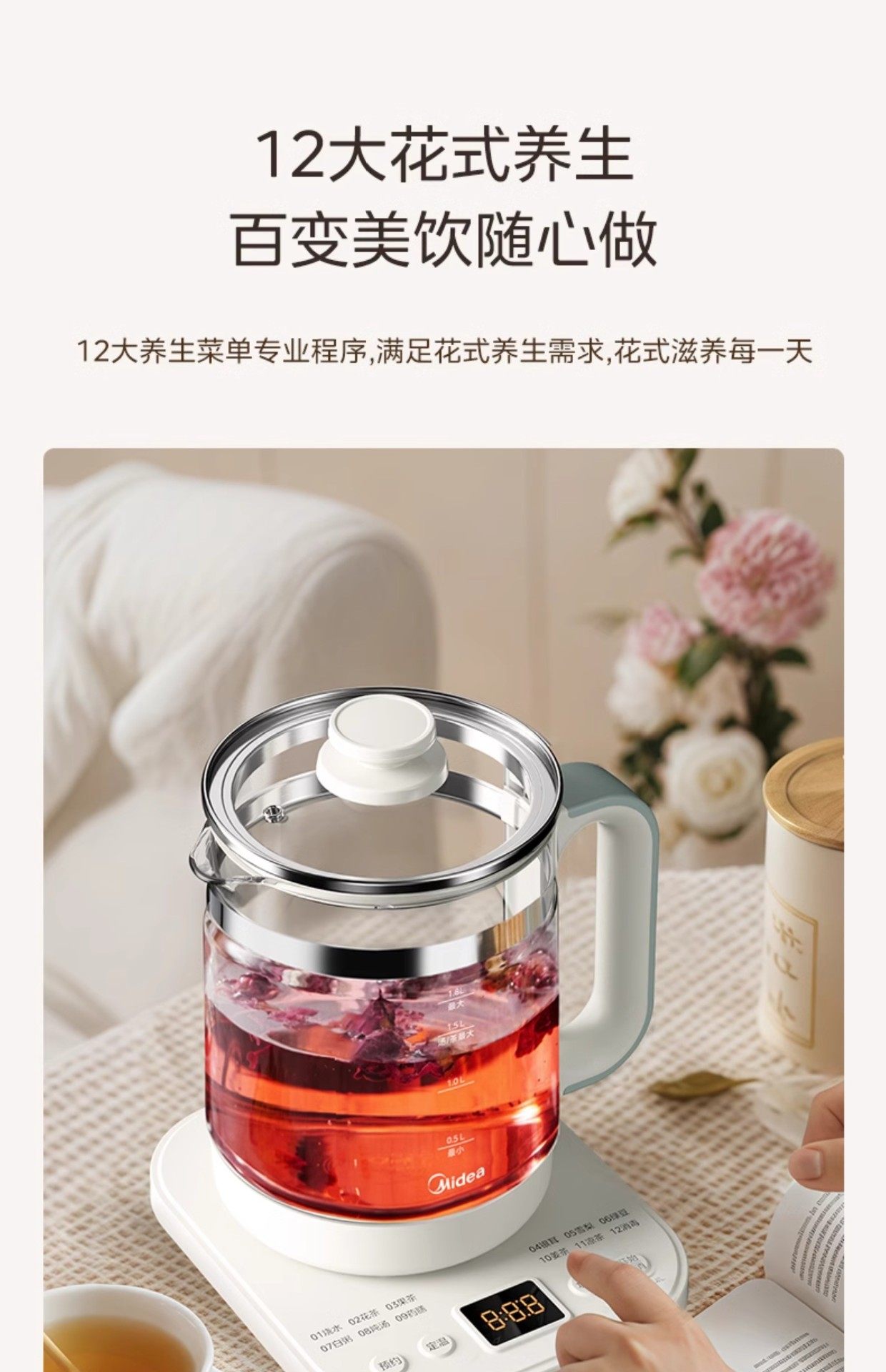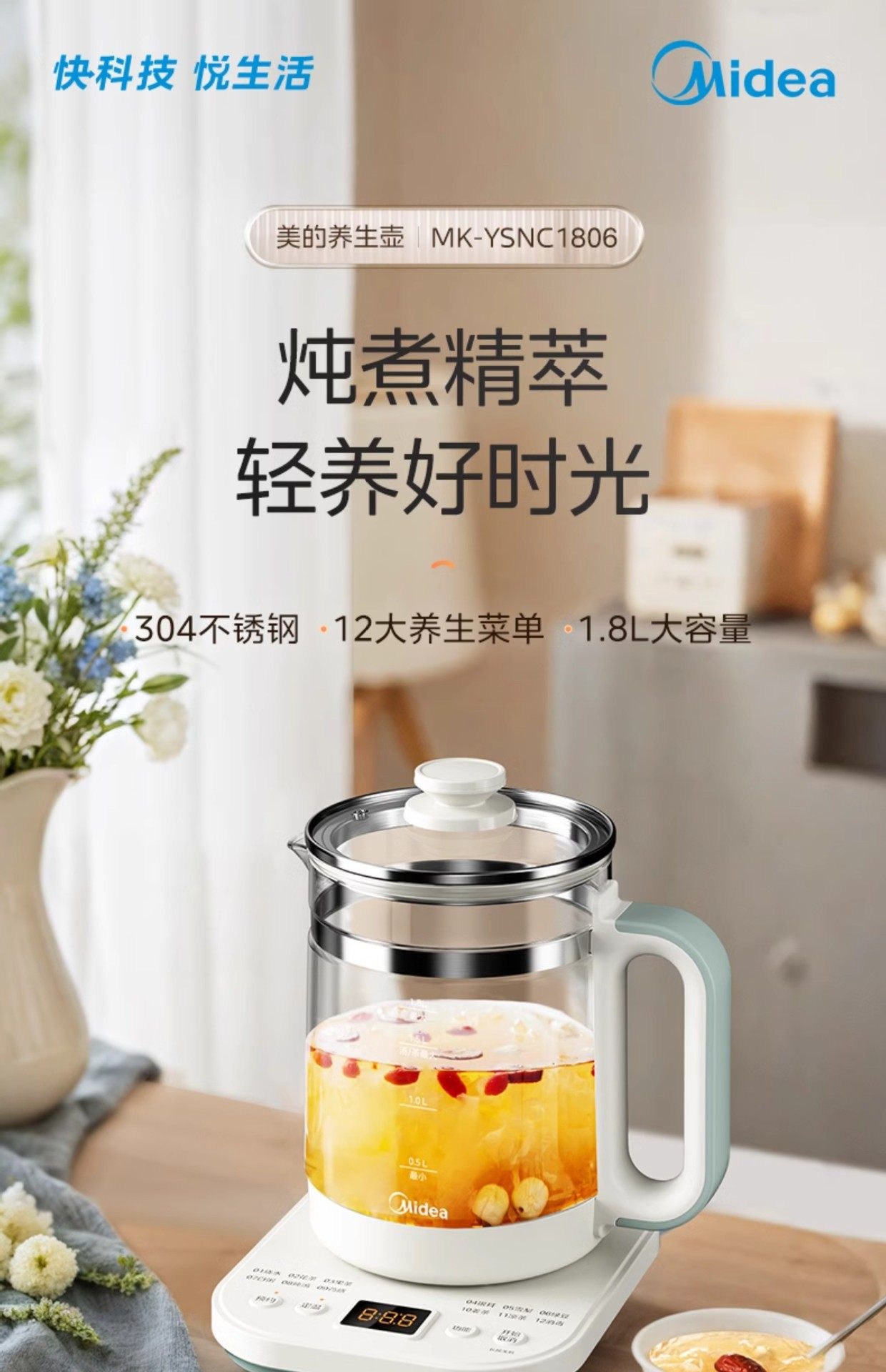 Midea Health Pot Office Household Multi-Functional Glass Tea Maker Fully Automatic Constant Temperature Water Kettle Ysnc1806