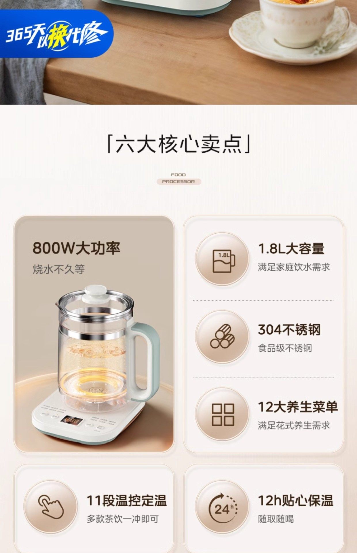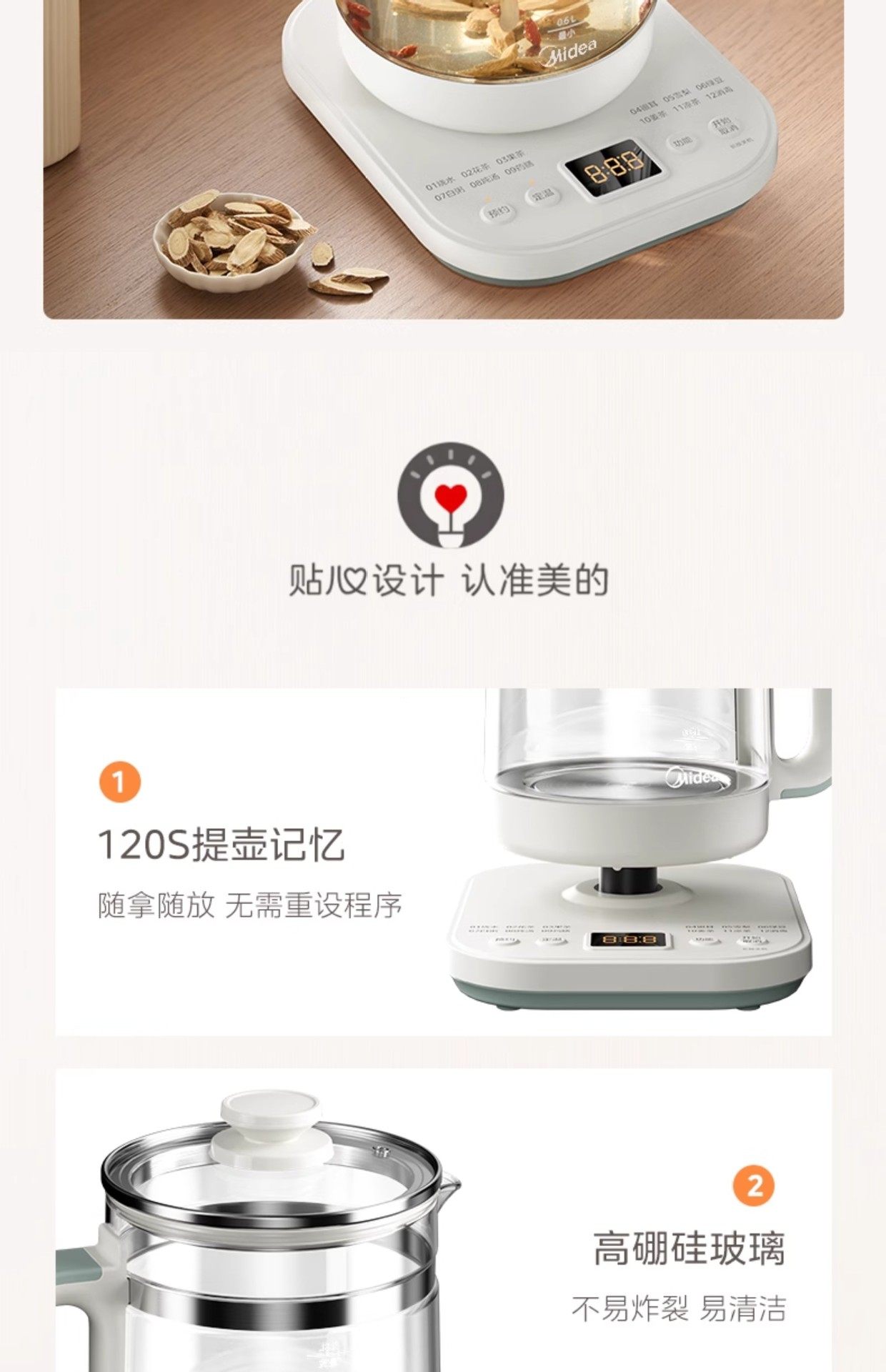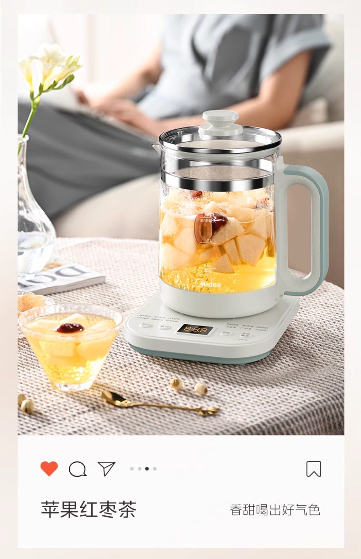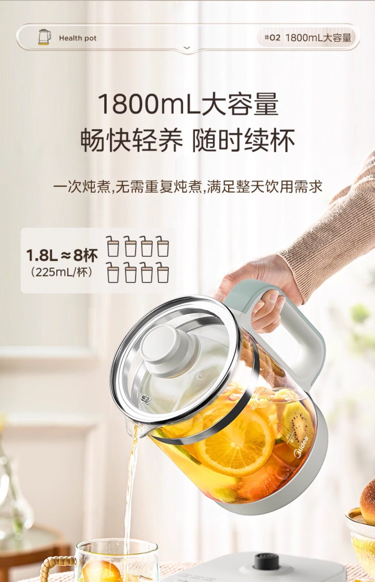 Midea Health Pot Office Household Multi-Functional Glass Tea Maker Fully Automatic Constant Temperature Water Kettle Ysnc1806