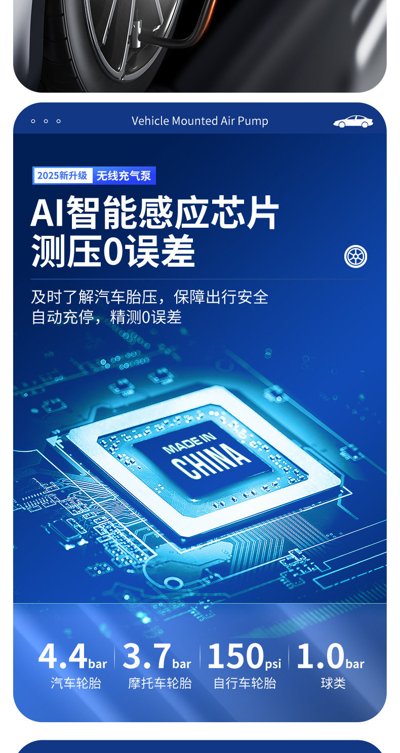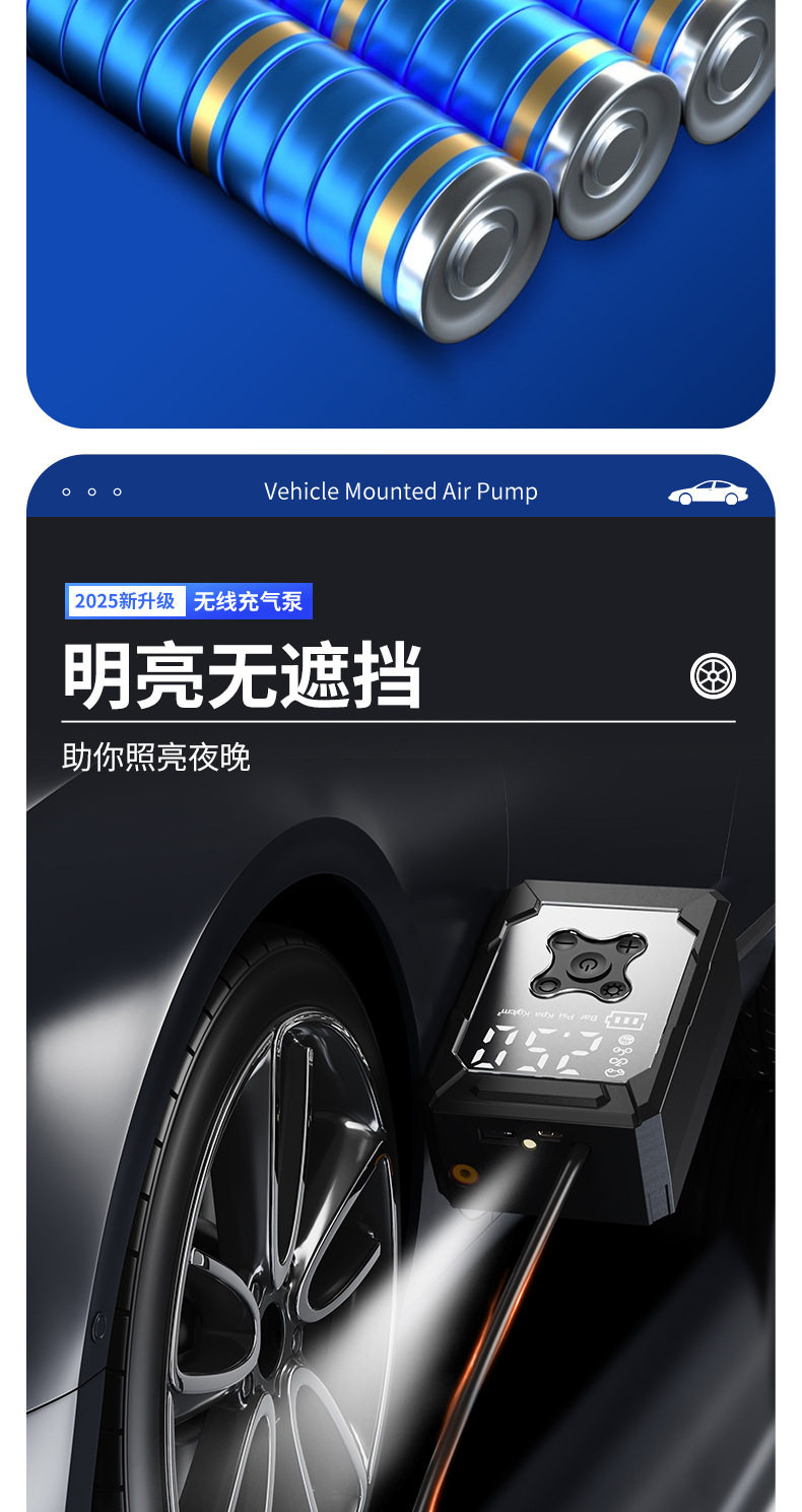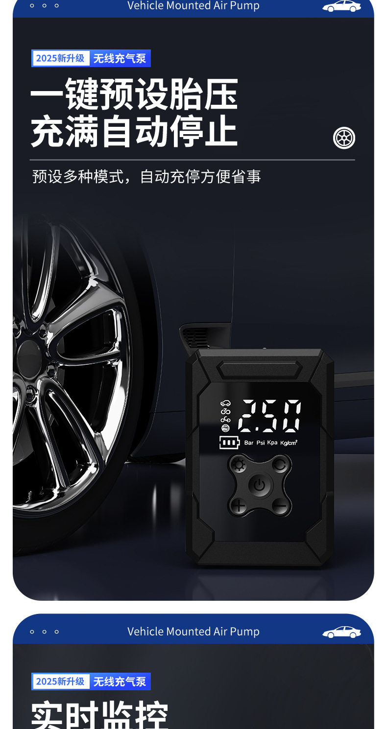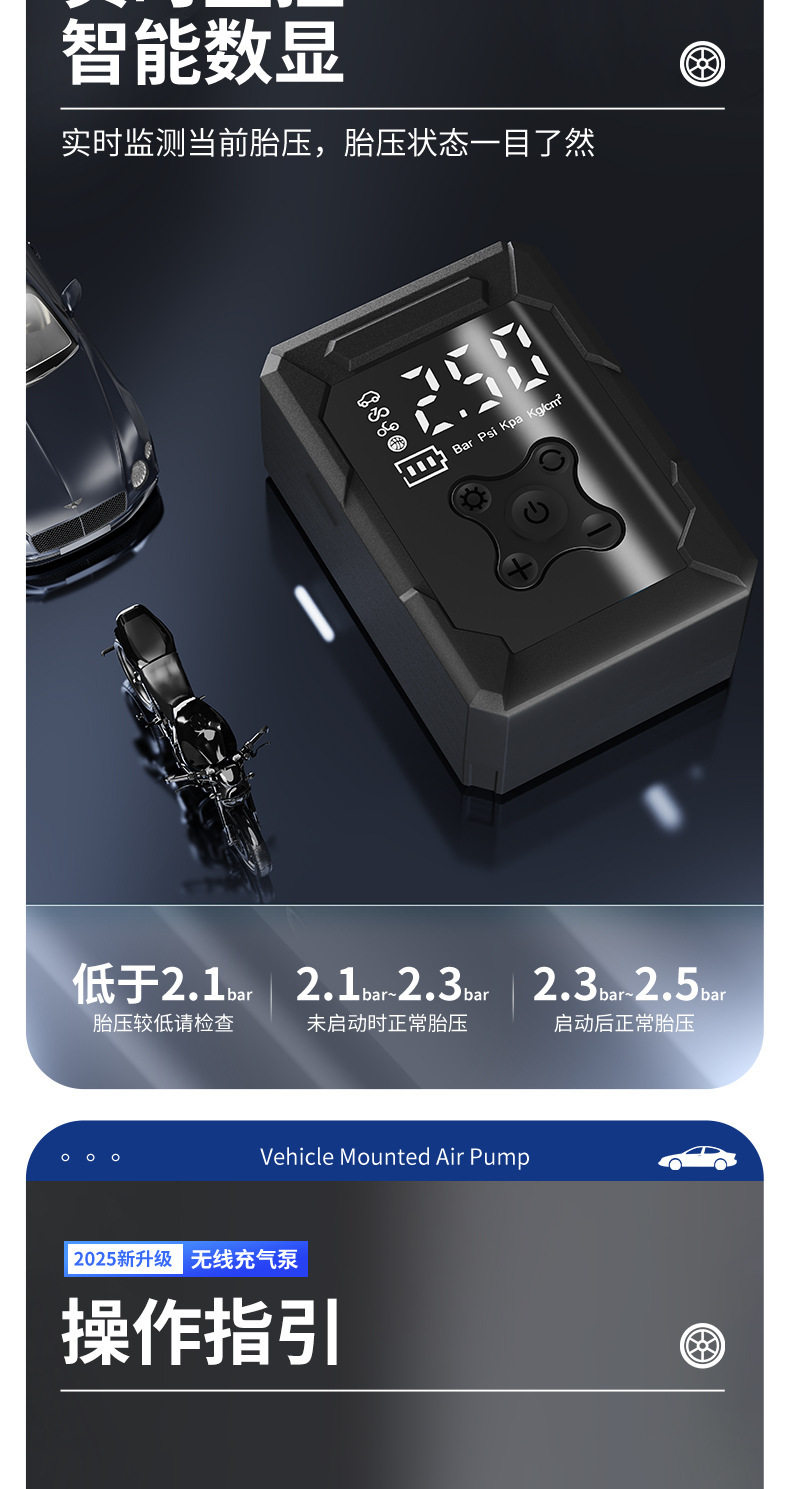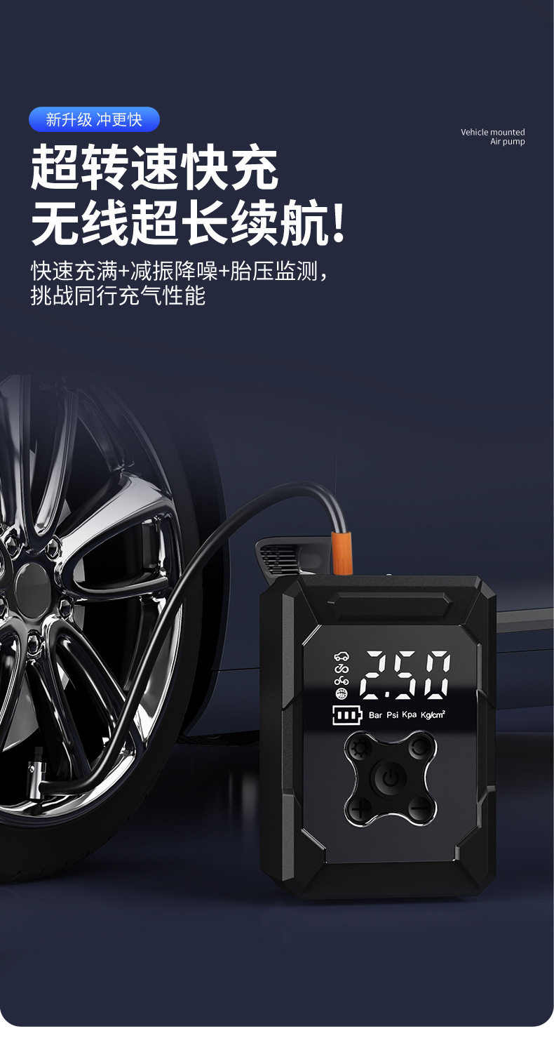 Car Air Pump Digital Display Tire Inflator Wireless Inflatable Portable Multi-Functional Motorcycle Bicycle