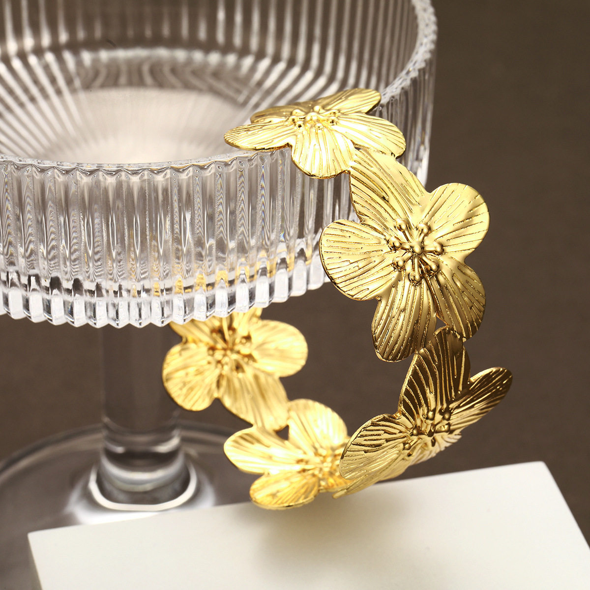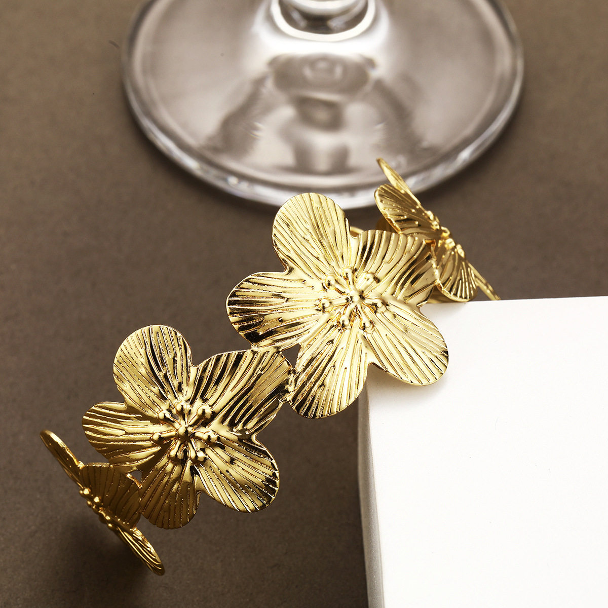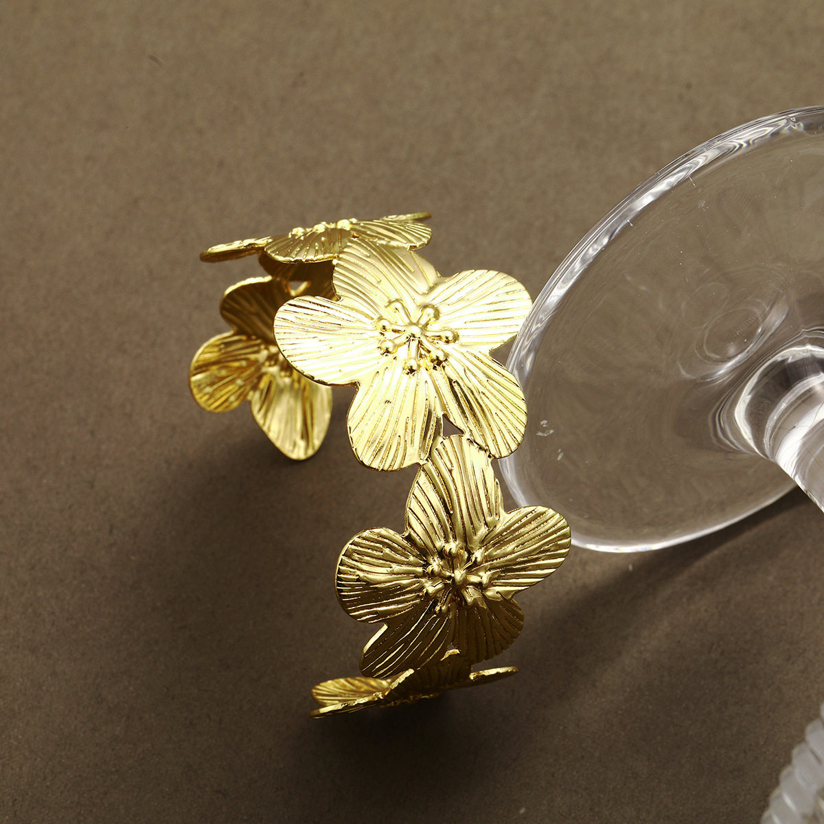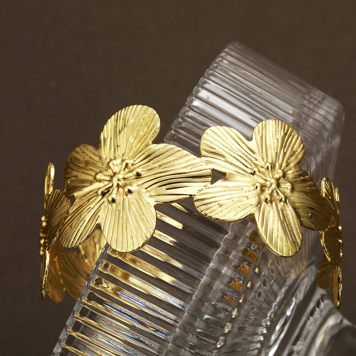 European and American Cross-border New Fashion Exaggerated Creative Geometric Flower Opening Bracelet Iron Gold Mosaic Flower Women's Handpiece