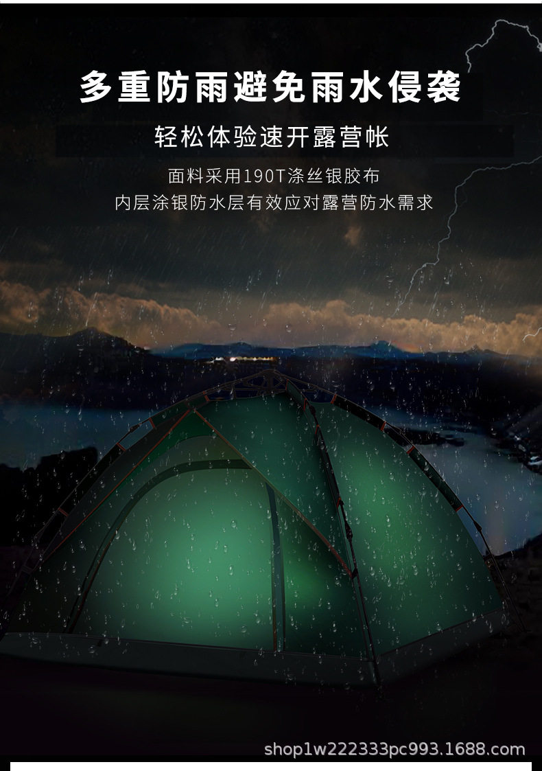 | Waterproof index of the outer tent | 1000mm(inclusive)-1500mm(inclusive) |