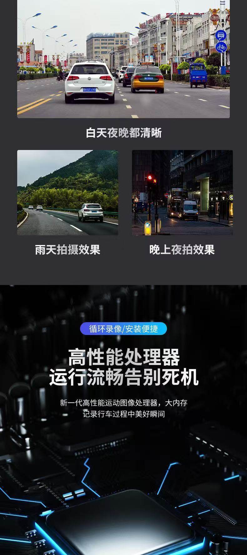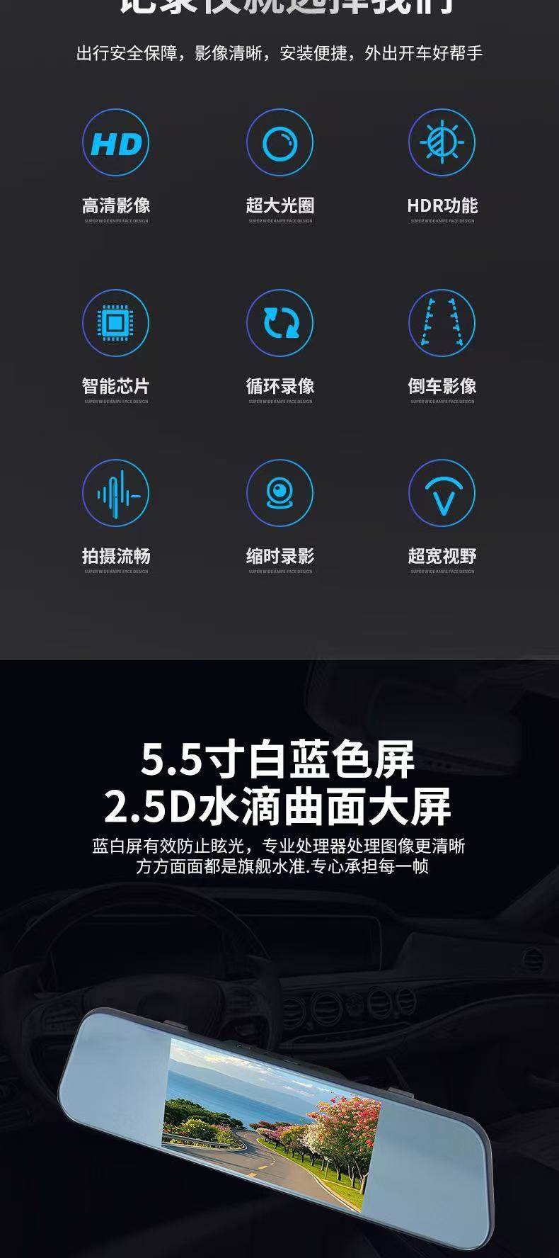 | Specifications and dimensions | Without touch—5.5inch—single pre-recording + no card,Dual recording with touch—5.5inch (front 1080p + rear 720p) + no card |