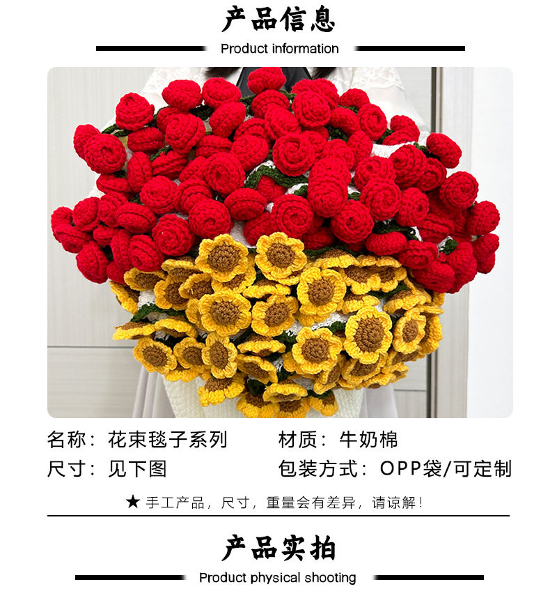 | Color | Rose bouquet blanket,Sunflower bouquet blanket,Puff bouquet blanket (purple + blue),Puff bouquet blanket (purple + pink),Puff bouquet blanket (purple + orange),Puff bouquet blanket (orange + yellow),Puff bouquet blanket (white + pink) |