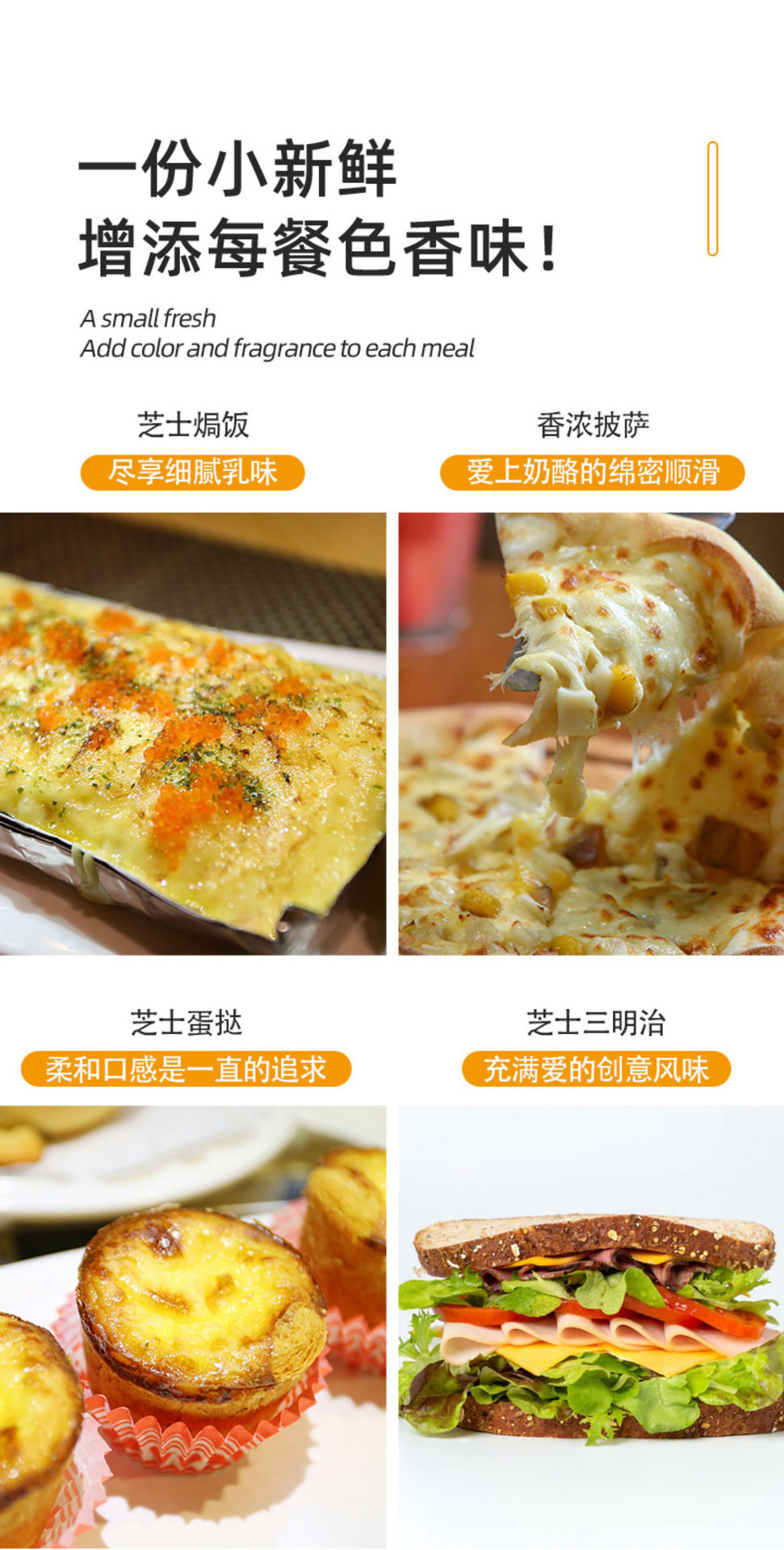 | Packaging specifications | Hamburger slices,Sandwich slices,Mozzarella slices,Emanta tablets |