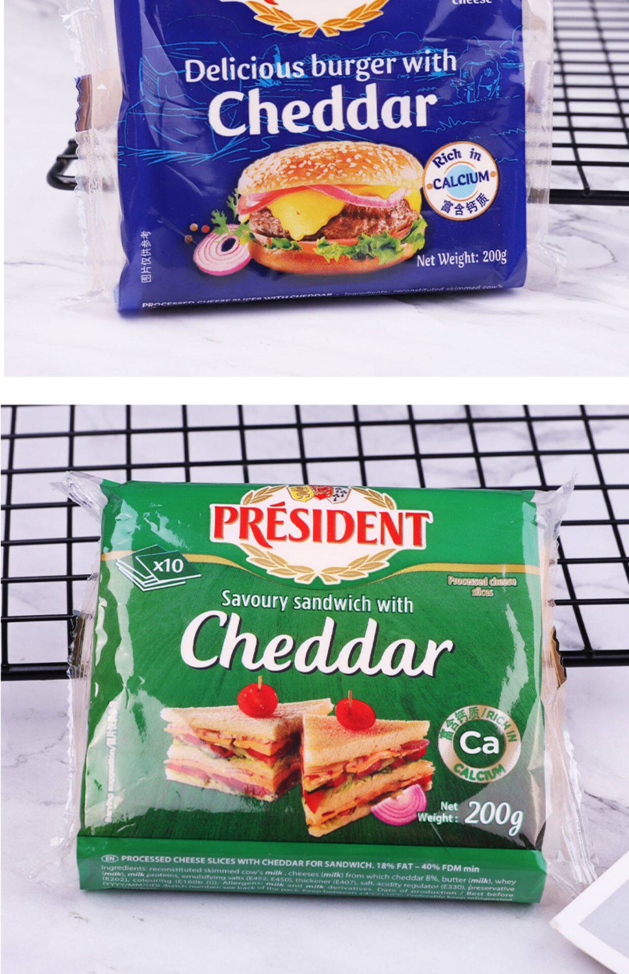 [Full Box] President French Imported Cheese Slices 10 Pieces Breakfast Sandwich Burger Commercial/Home Baking