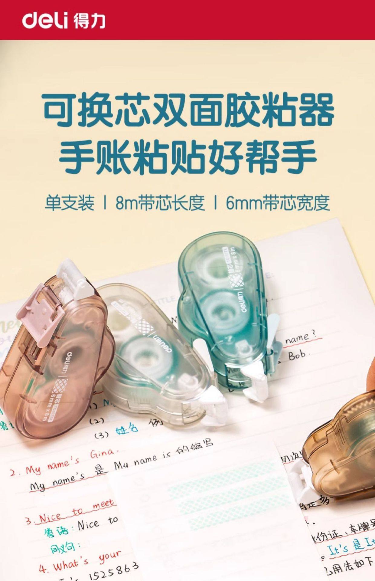 Deli Replaceable Core Dot Glue Dot-Shaped Double-Sided Tape Correction Tape Student Handbook Special Dot Glue Pen Tape