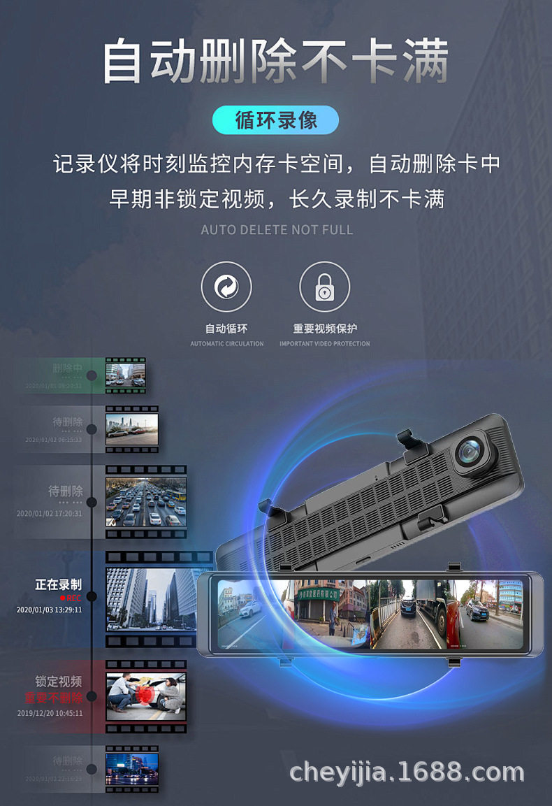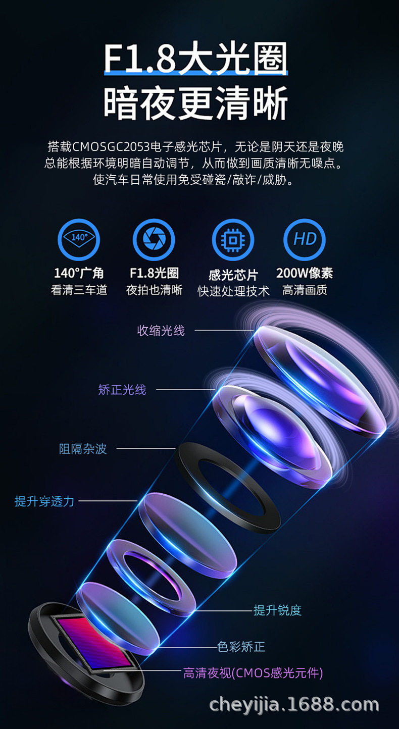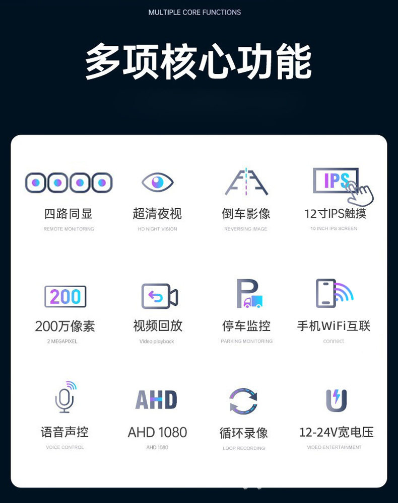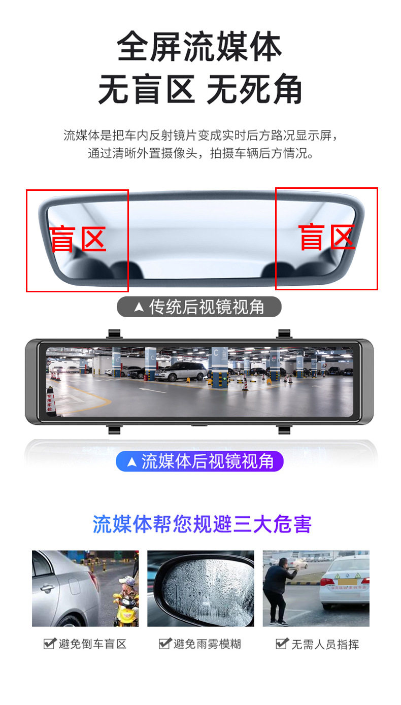 | Function | Reversing image,Loop recording,Parking monitoring,Night vision fill light,Lane change assist,Enhanced night vision,Before and after video |
