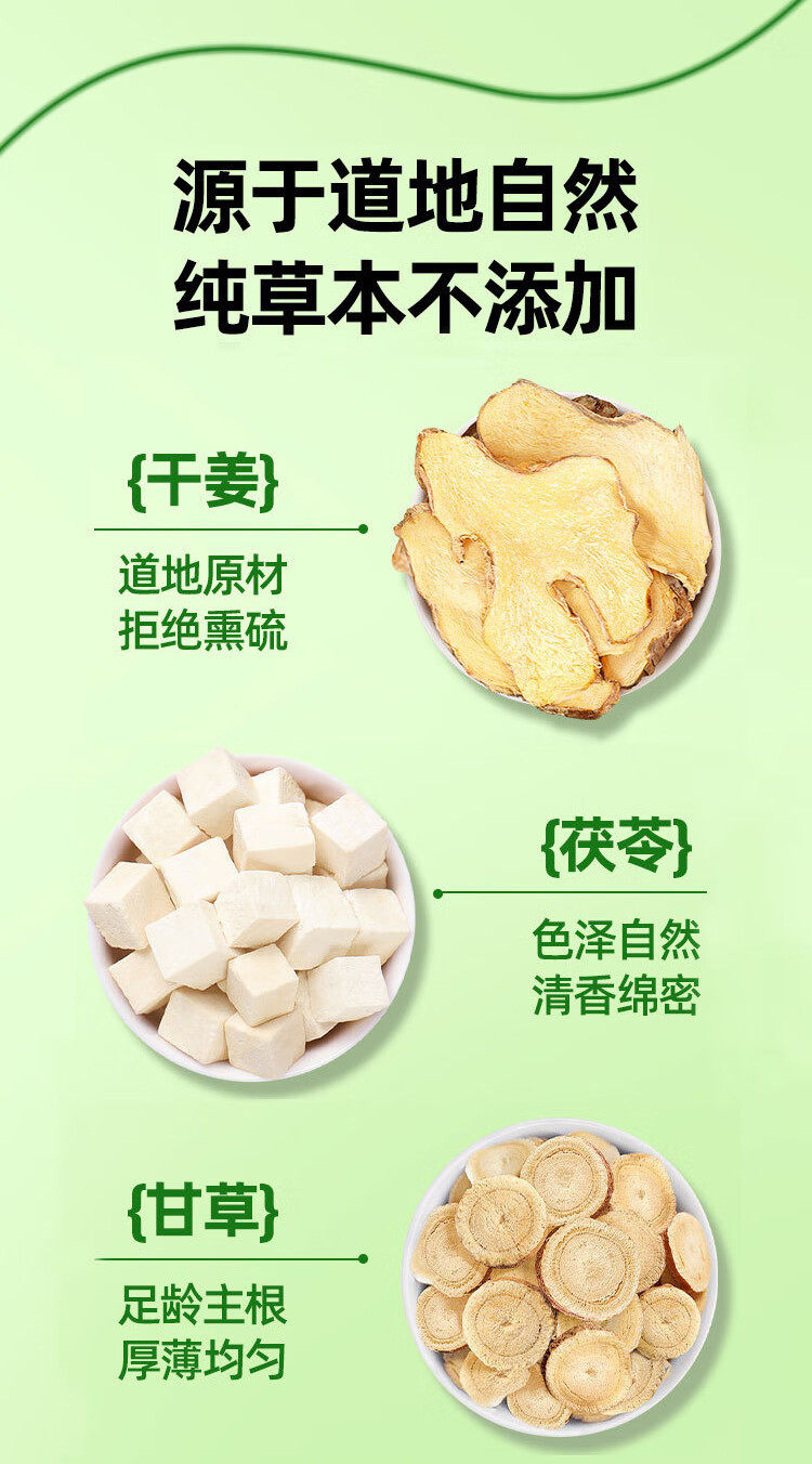| Raw materials and ingredients | Zhi gancao, codonopsis, poria, dried ginger |