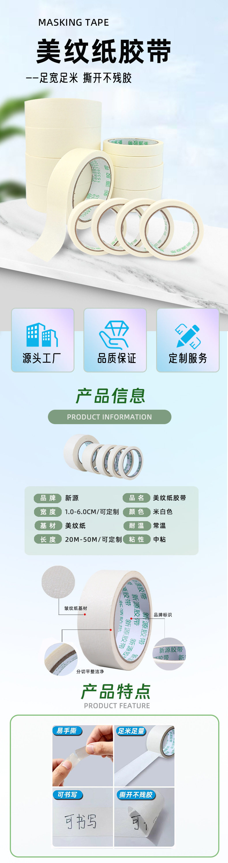 Masking paper tape wholesale decoration paint masking easy to tear no marks art raw color welt special masking paper