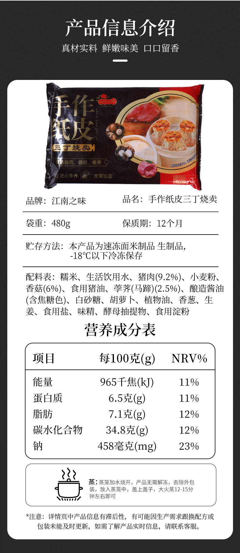 | Item number | Shiitake mushroom three-ding paper-skinned shaomai |
