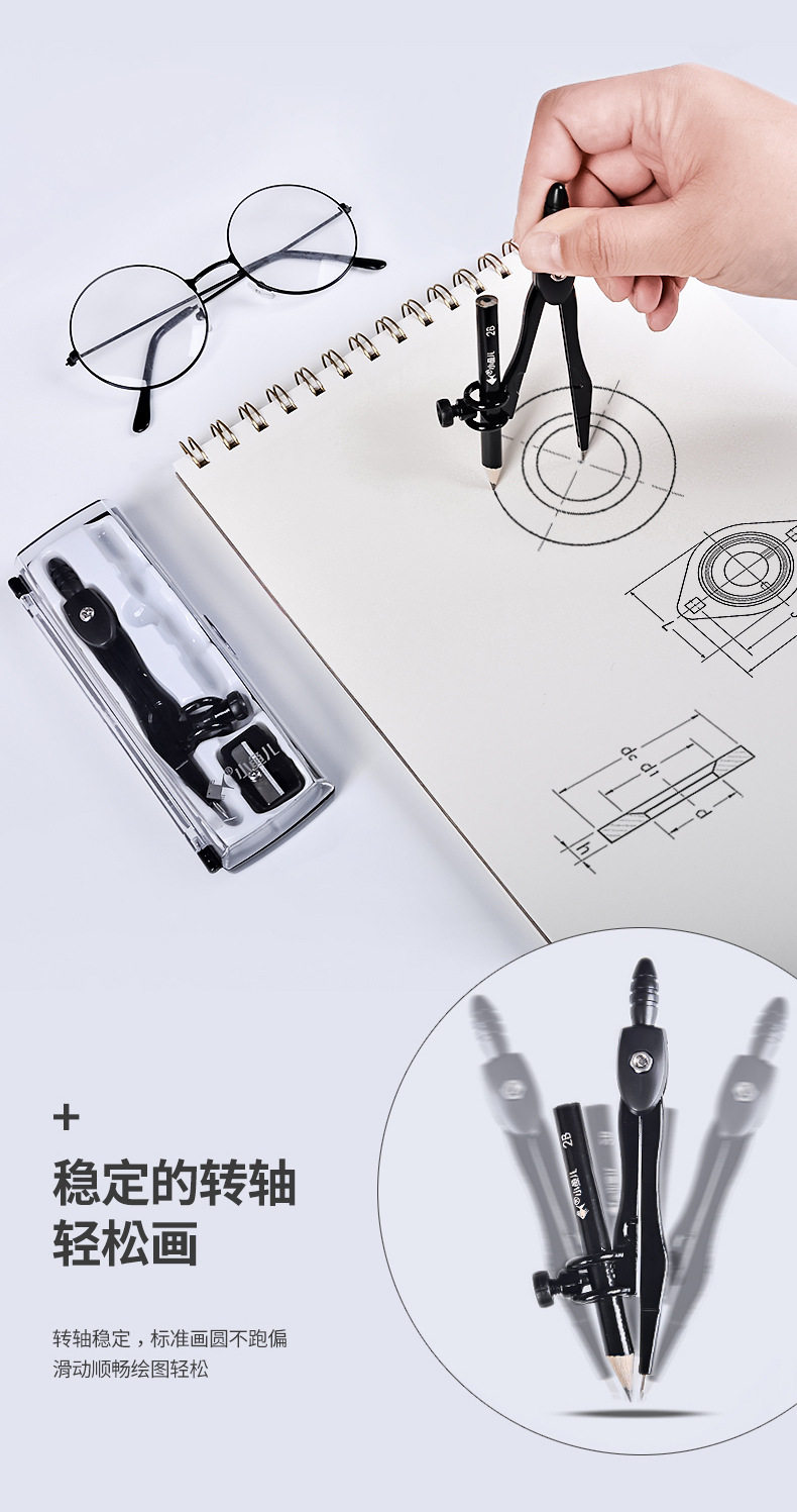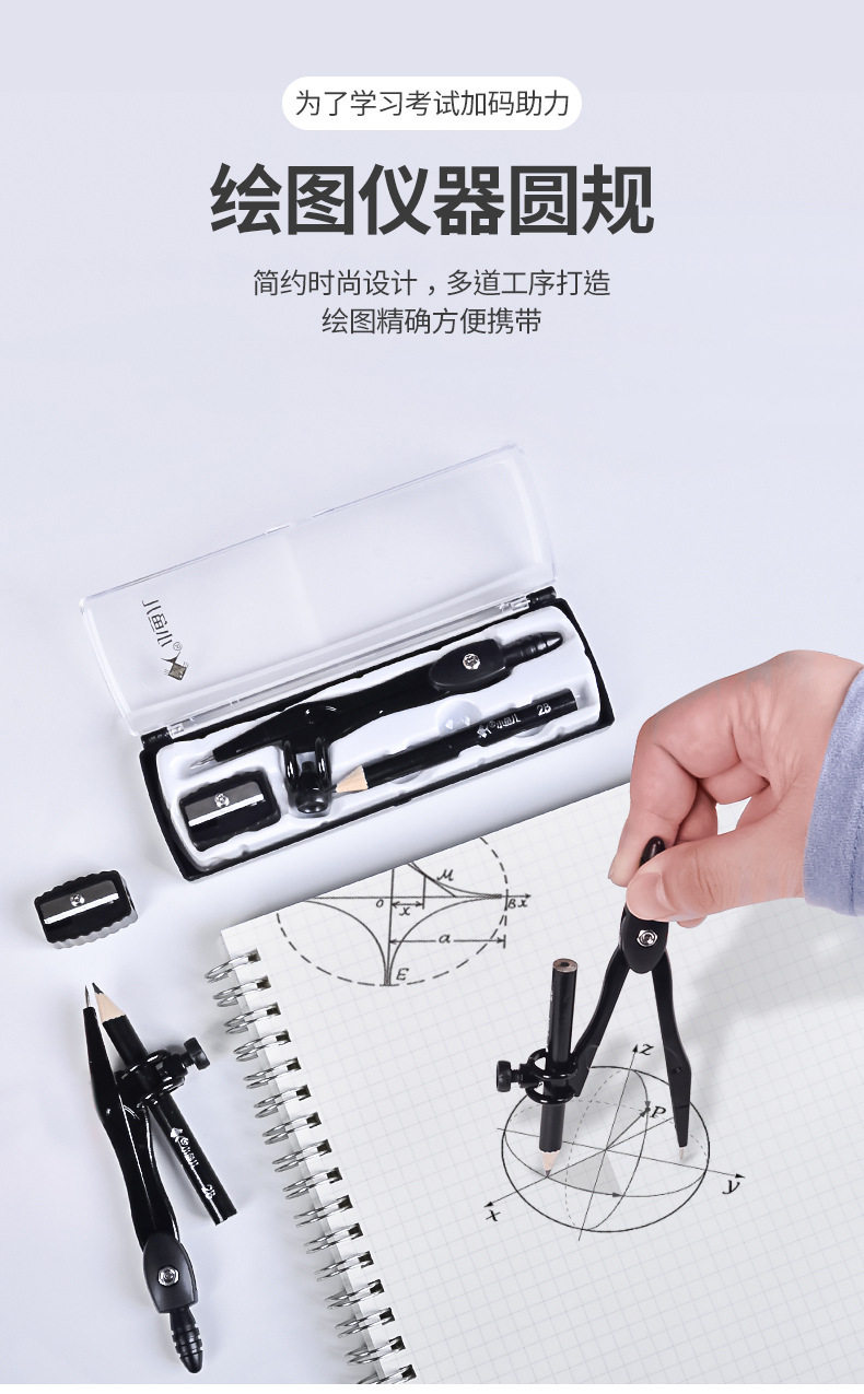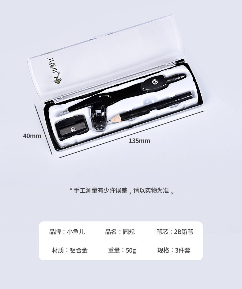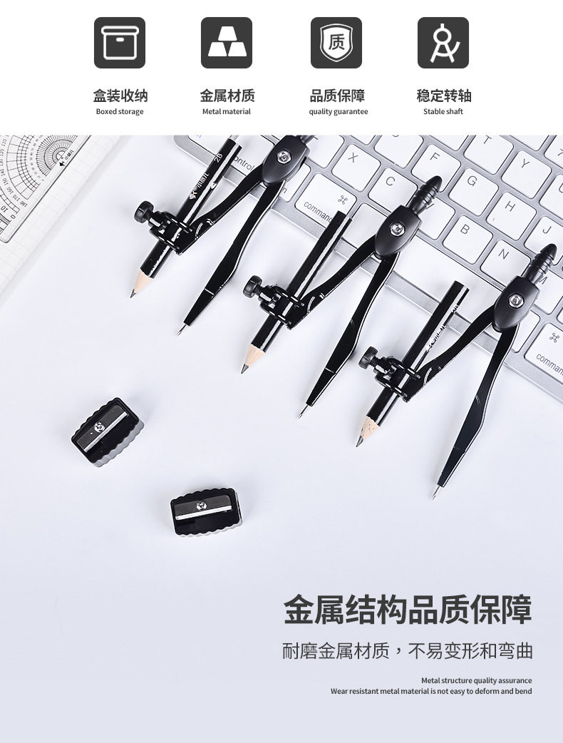 Xiaoyuer Metal Compass Wholesale 2218 Student Drawing Tool Set Black Compass with Pencil Sharpener
