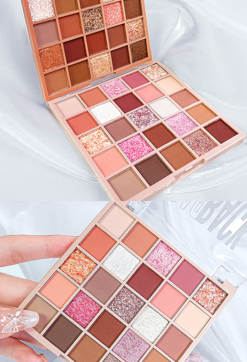 25-Color Eye Shadow Orange Brown Palette Super Shiny Pearlescent Matte 2025 New Niche Comprehensive Multi-Color Taro Mud Palette Rose Color