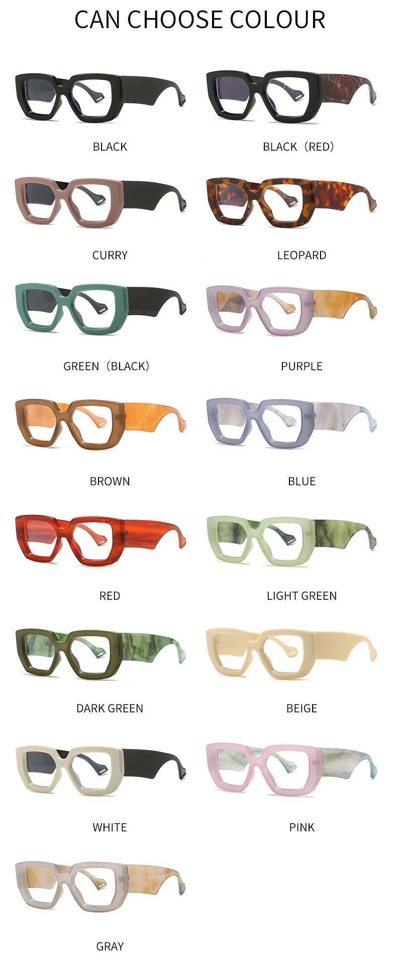 | Frame color | Black frame,Black frame flower feet,Pink frame black feet,Green frame,Fruit tea box,Tortoiseshell frame,Pink and purple frame,Blue frame,Red stripe frame,Off-white frame,White frame,Pink frame,Gray frame,Light green frame,Dark green frame |