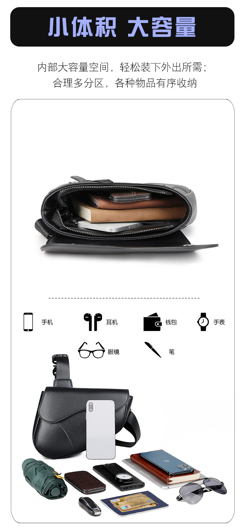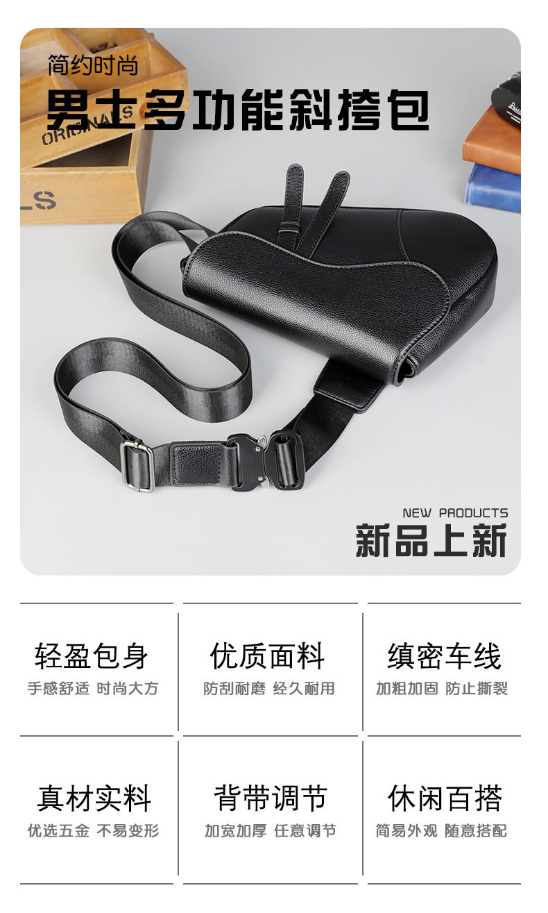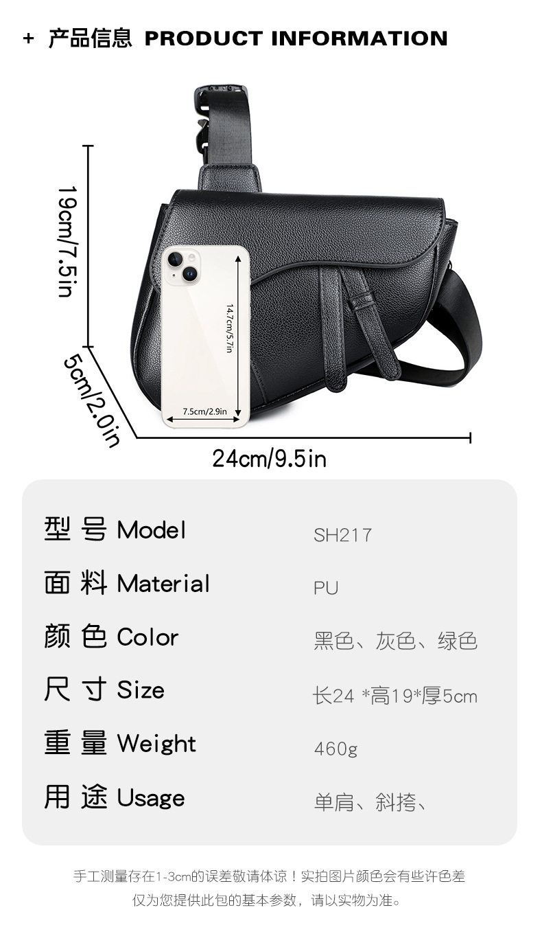 Sh217 Shoulder Bag Saddle Bag Zipper Diagonal Bag Men's Simple Texture Shoulder Bag Lightweight Men's Bag Pure Color