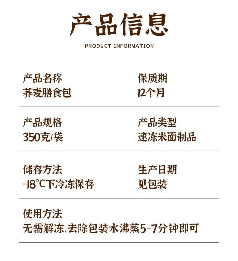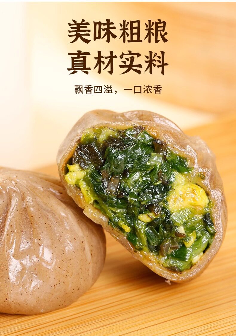 | Packaging specifications | [about 60 pieces] mix one pack of each of four flavors,[about 60 pieces] 2 packs of vegetarian vegetables + 2 packs of leeks and eggs,[about 60 pieces] 2 packs of chicken buns + 2 packs of shepherd’s purse and eggs,[about 60 pieces] 2 packs of vegetarian fried rice + 2 packs of chicken buns,[about 60 pieces] 2 packs of vegetarian vegetables + 2 packs of shepherd's purse and eggs,[about 60 pieces] 2 packs of chicken buns + 2 packs of leeks and eggs,[about 60 pieces] 2 packs of shepherd’s purse eggs + 2 packs of chive eggs,2 bags of buckwheat and chicken steamed dumplings + 2 bags of shepherd’s purse and egg buns,2 bags of buckwheat chicken steamed dumplings + 2 bags of vegetarian assorted dumplings,2 bags of buckwheat chicken steamed dumplings + 2 bags of chive eggs,[about 30 pieces] 1 pack of vegetarian assorted vegetables + 1 pack of leek and eggs,[about 30 pieces] 1 pack of shepherd’s purse and eggs + 1 pack of chicken buns,[about 15 pieces] buckwheat assorted 350g*1 pack,[about 15 pieces] buckwheat chicken buns 350g*1 pack,[about 15 pieces] buckwheat, mustard and eggs 350g*1 pack,[about 15 pieces] buckwheat, leeks and eggs 350g*1 pack |