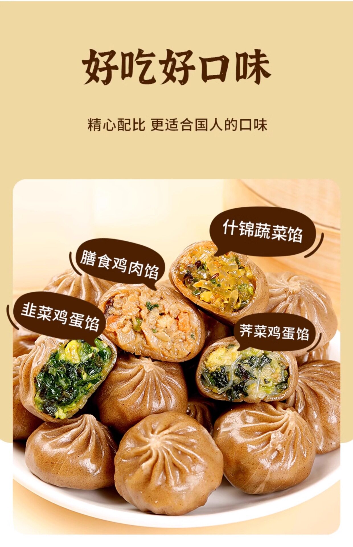 Buckwheat Steamed Buns Breakfast Semi-Finished Products Heated Ready-To-Eat Vegetarian Xiaolongbao Konjac Dumplings Reduced Grain Fat Meal Replacement Staple Food
