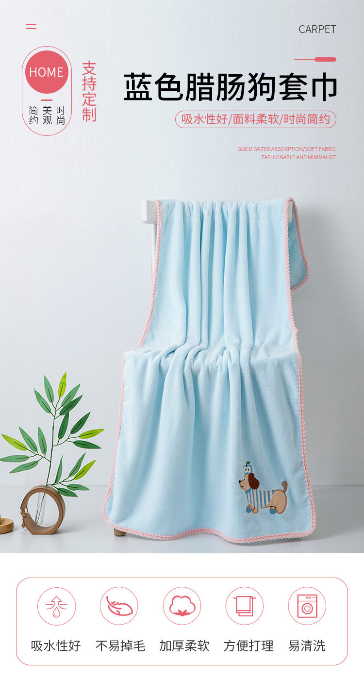 Cute Cartoon Apple Dachshund Household Towel Bath Towel suit Student Dormitory Coral Fleece Soft Absorbent Set Towel
