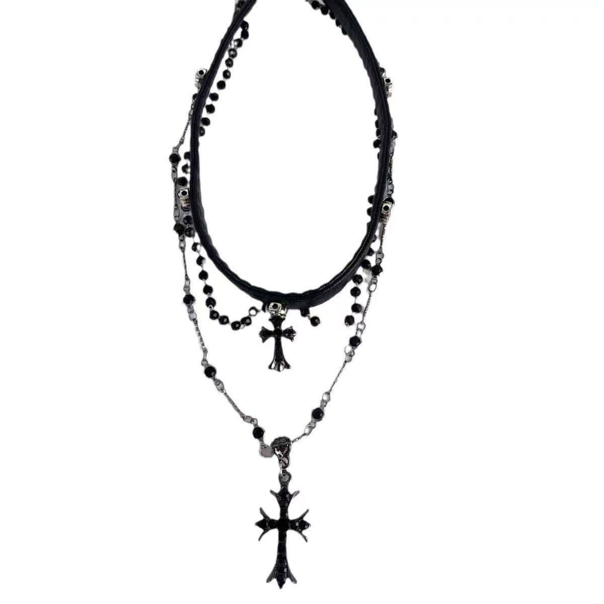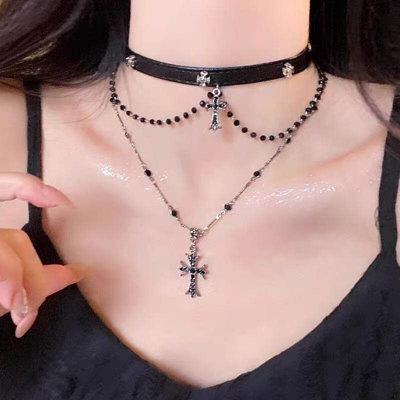 Diablo Original Sweet Cool Hot Girl Style Cross Necklace Women's Gothic Style Punk Multi-Layer Clavicle Chain Neck Strap Fashion