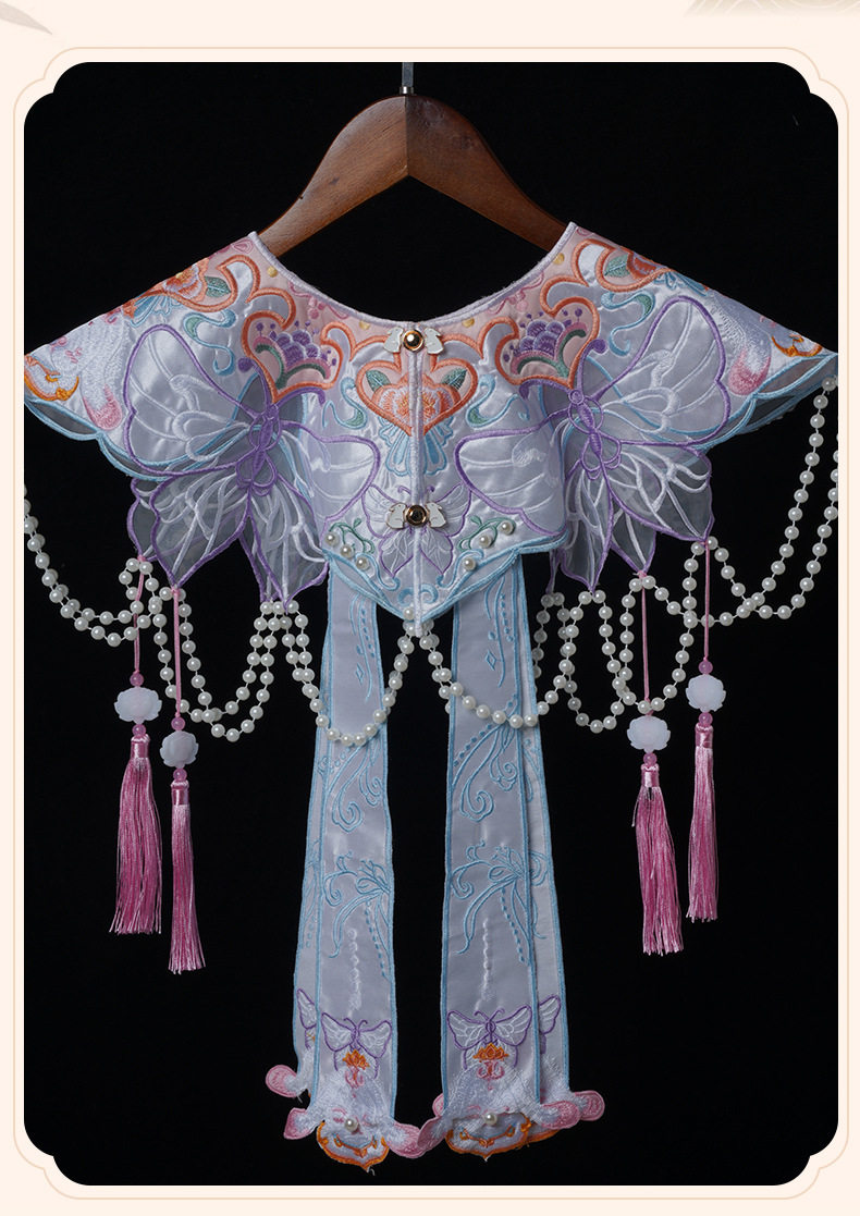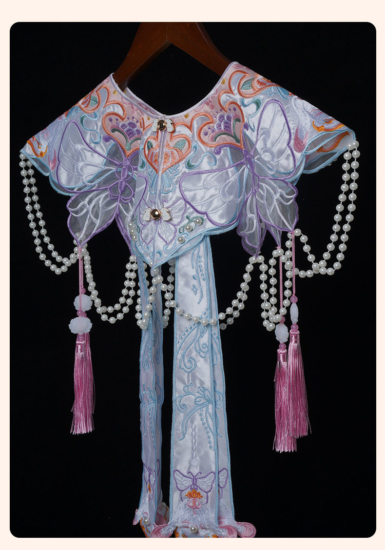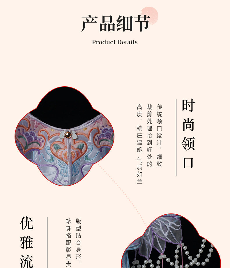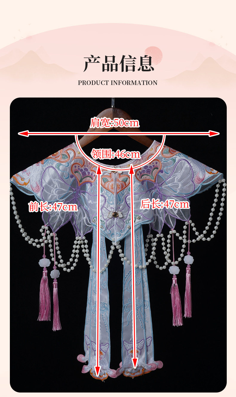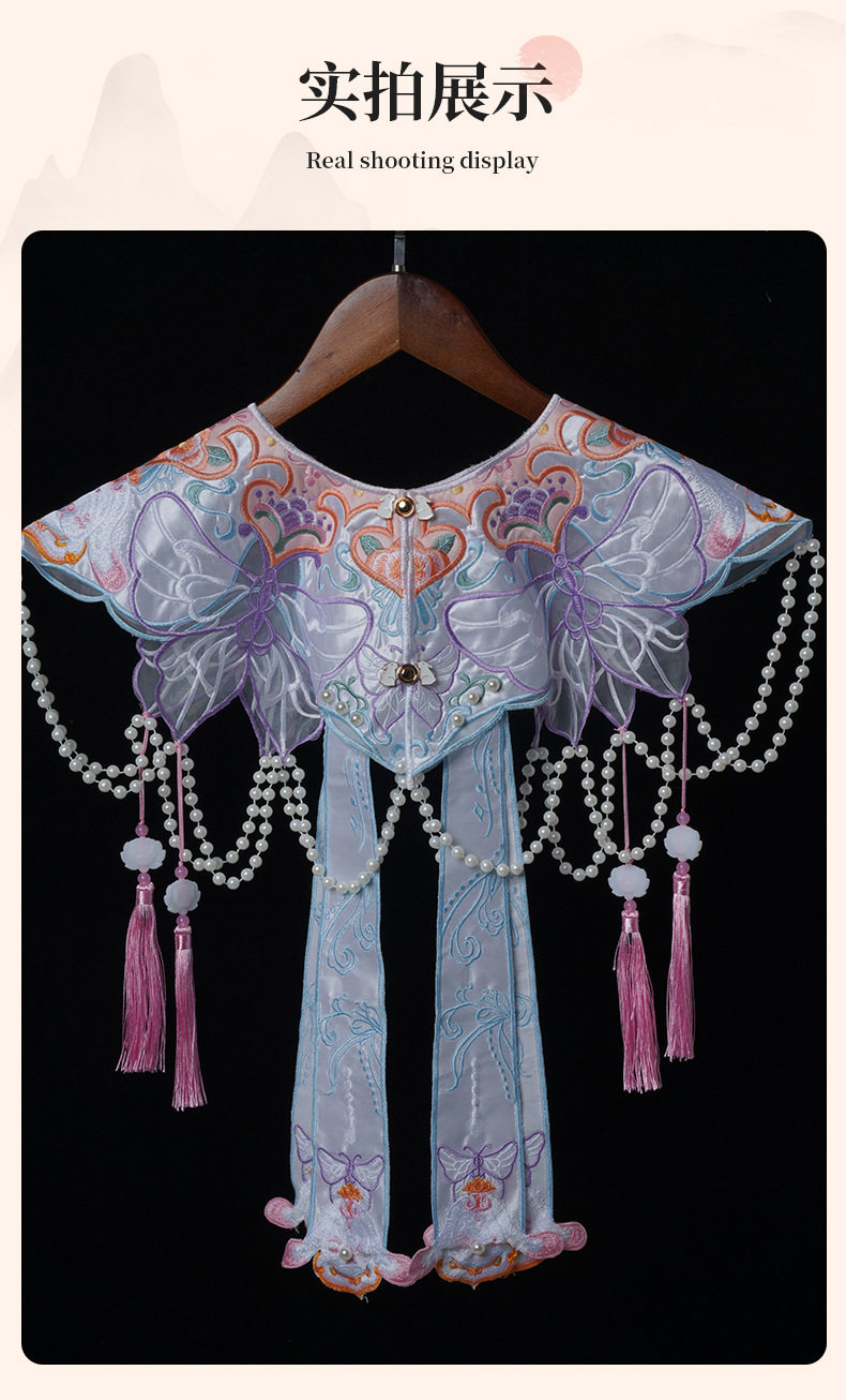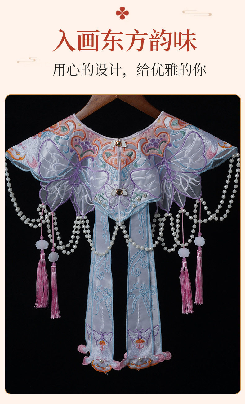 New Hanfu Horse Face Dress Cloud Shoulder Student Graduation Bachelor's Dress Shawl Fake Collar Decorative Cheongsam Dress Cloud Shoulder Blue