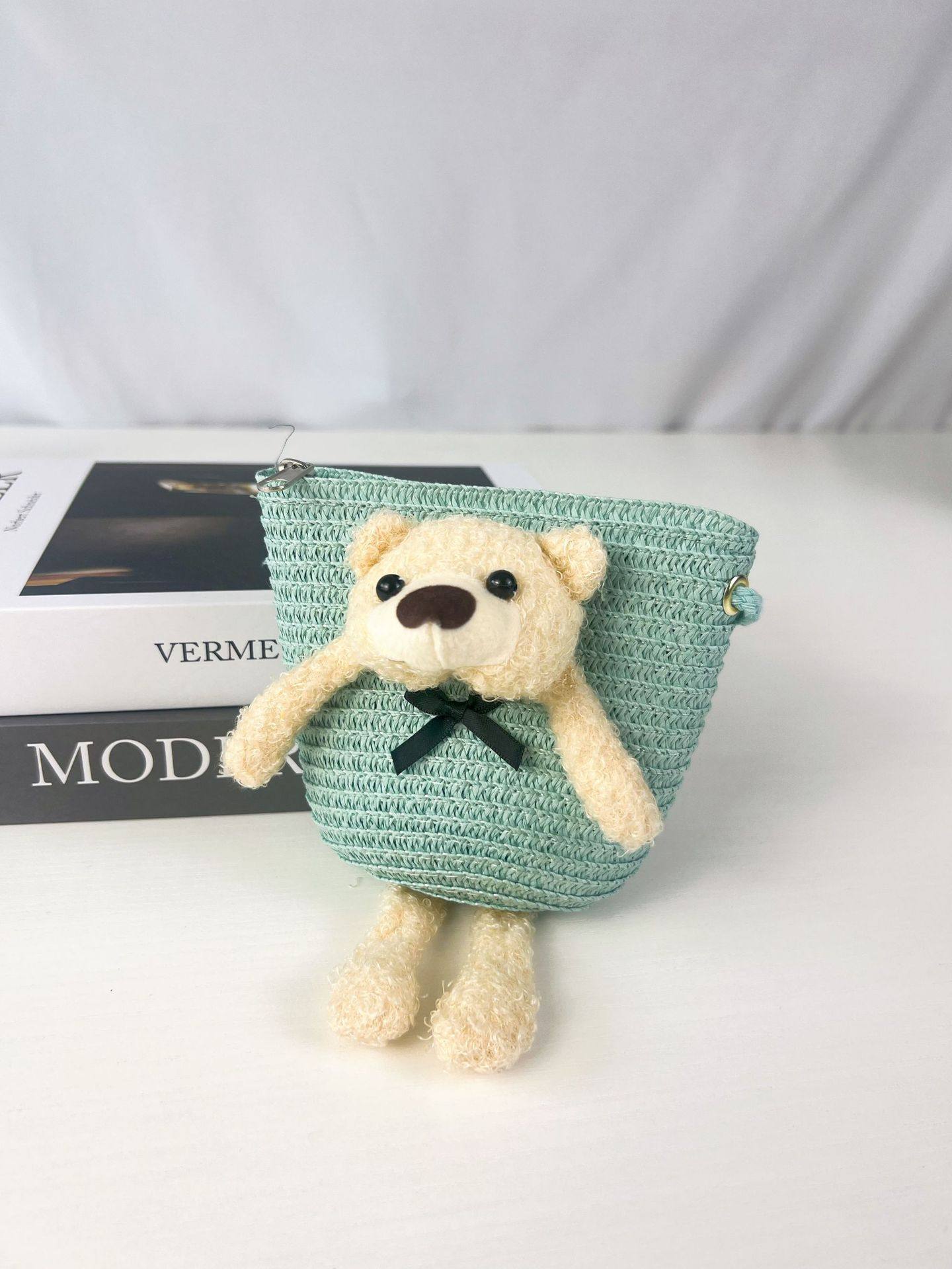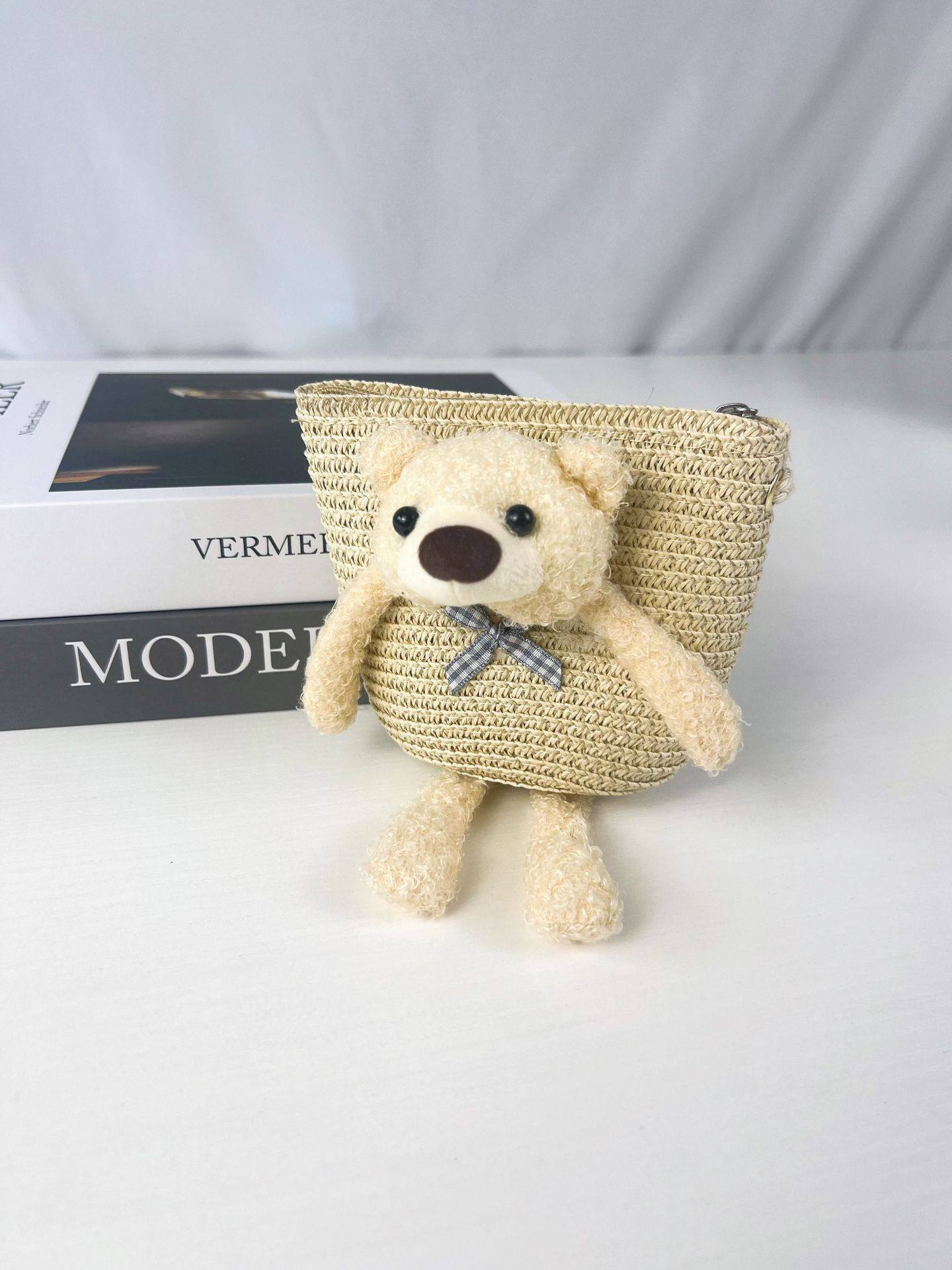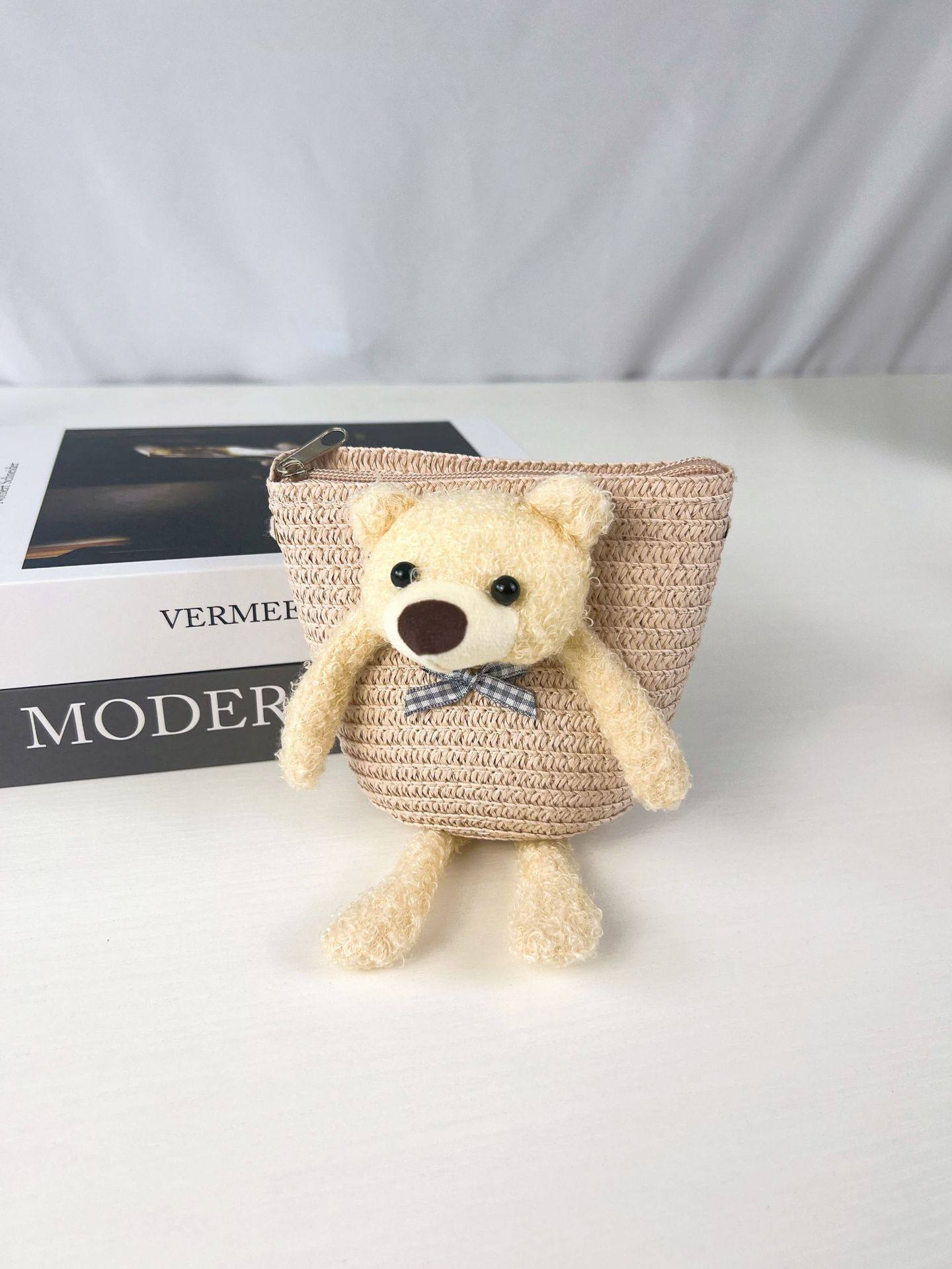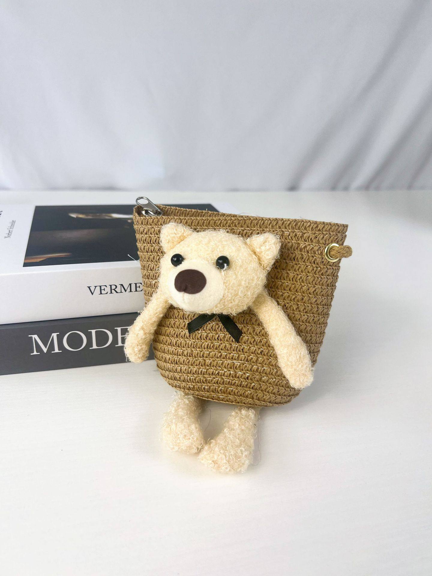 Baby Straw Bag, Kidsren's Versatile Summer New Cartoon Bear Diagonal Coin Purse, Beach Bag Storage