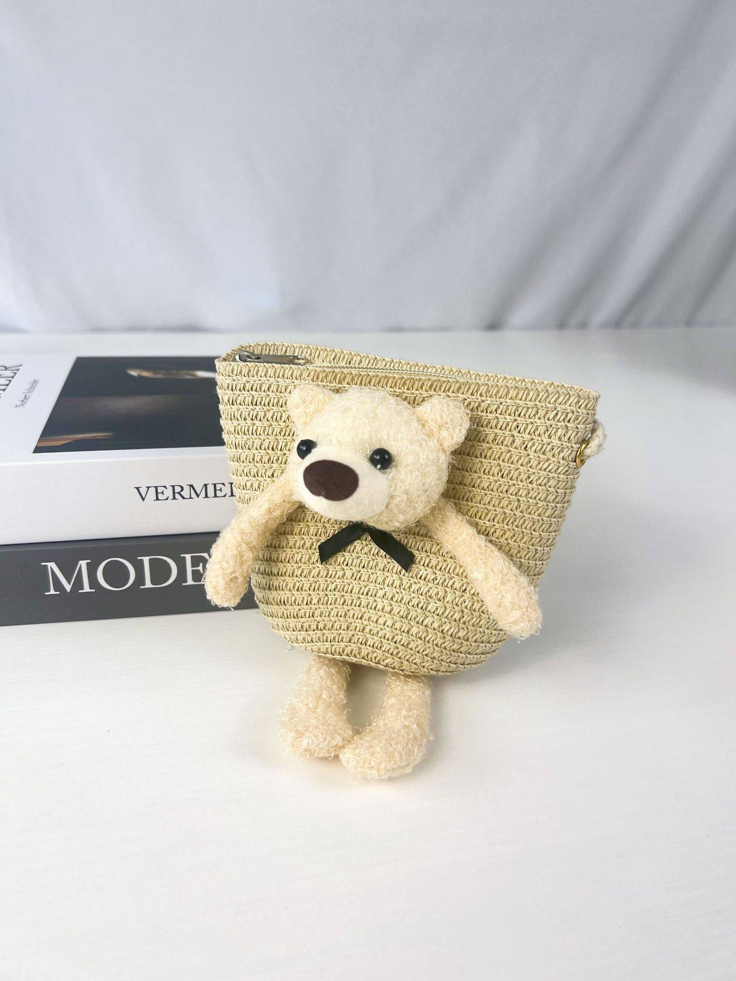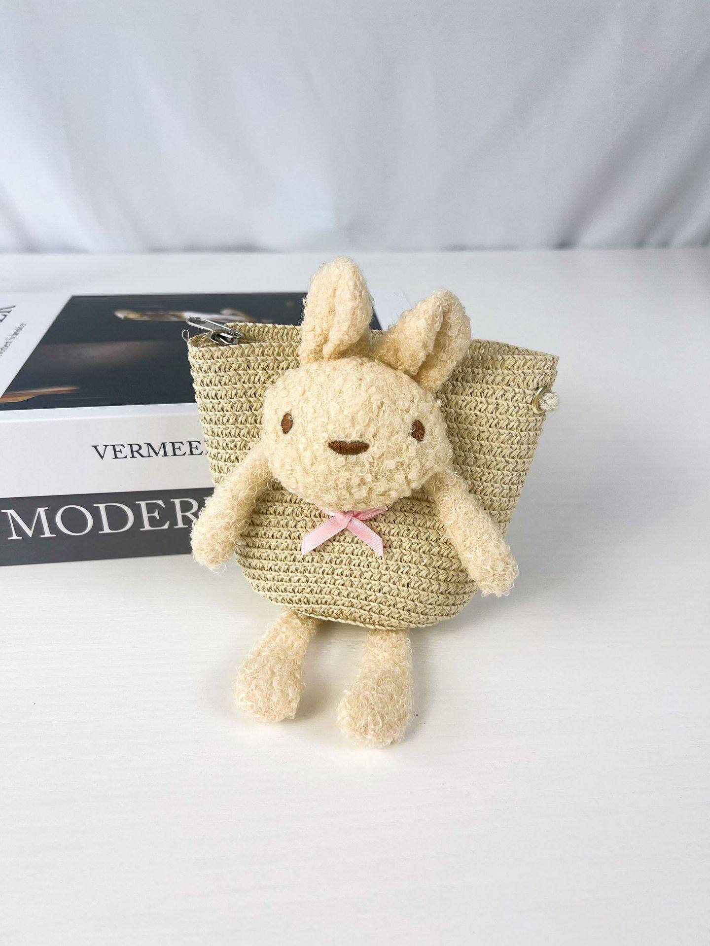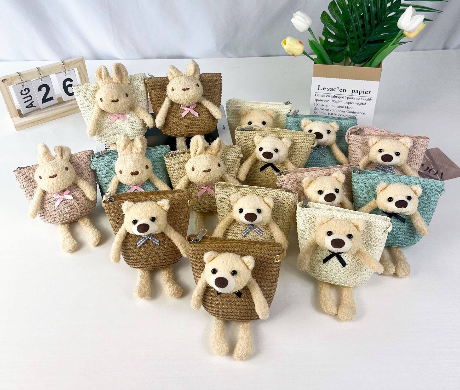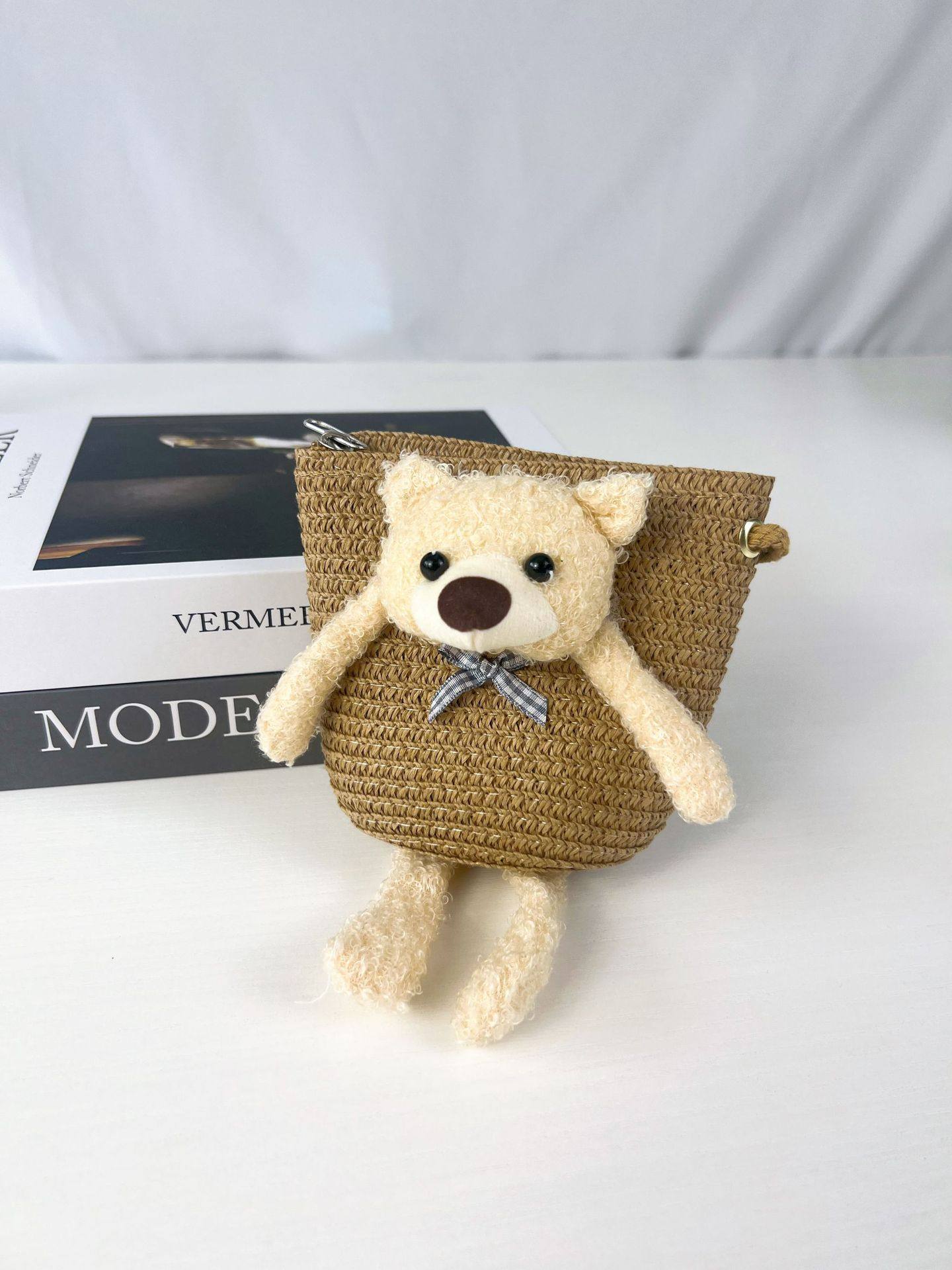 Baby Straw Bag, Kidsren's Versatile Summer New Cartoon Bear Diagonal Coin Purse, Beach Bag Storage