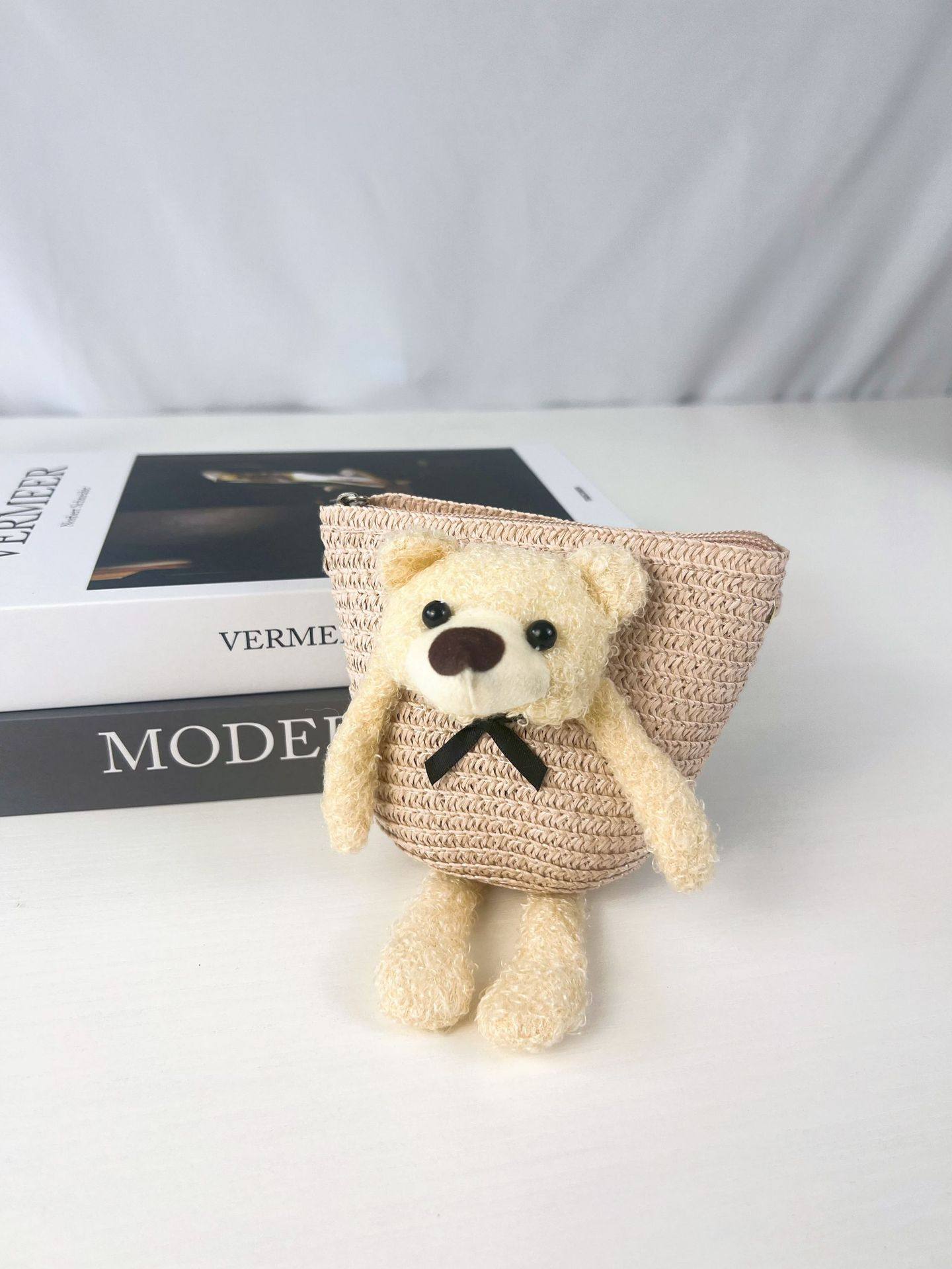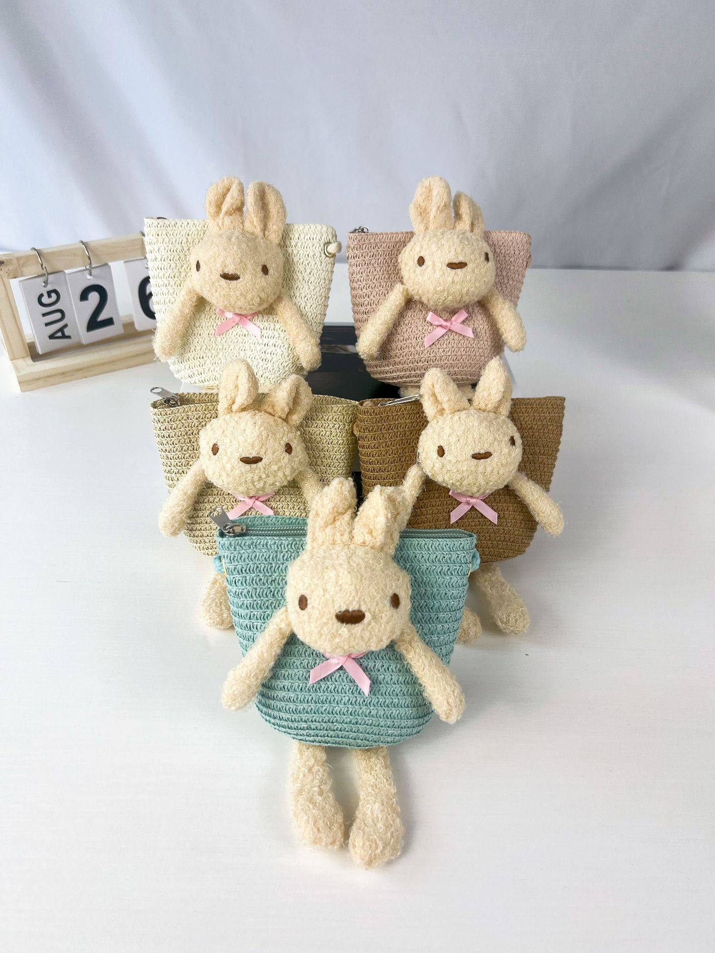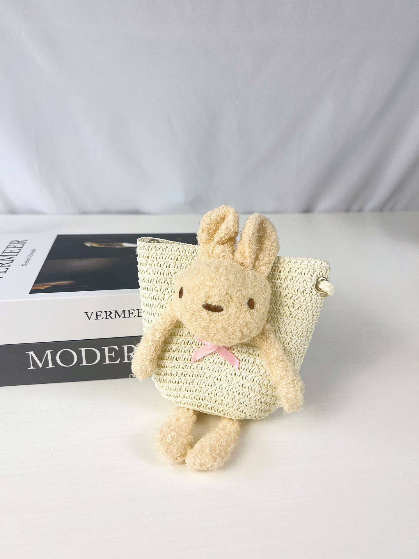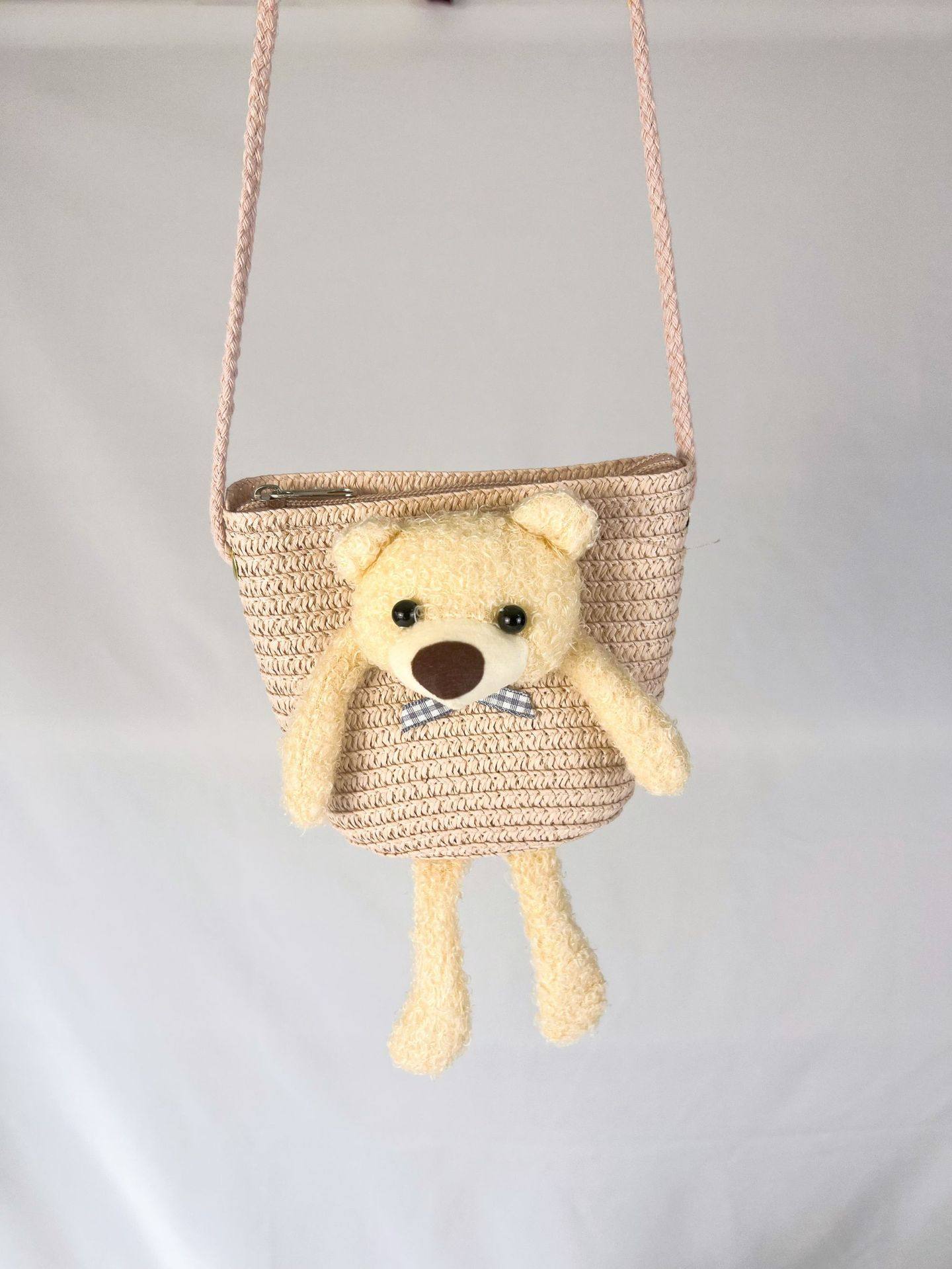 Baby Straw Bag, Kidsren's Versatile Summer New Cartoon Bear Diagonal Coin Purse, Beach Bag Storage